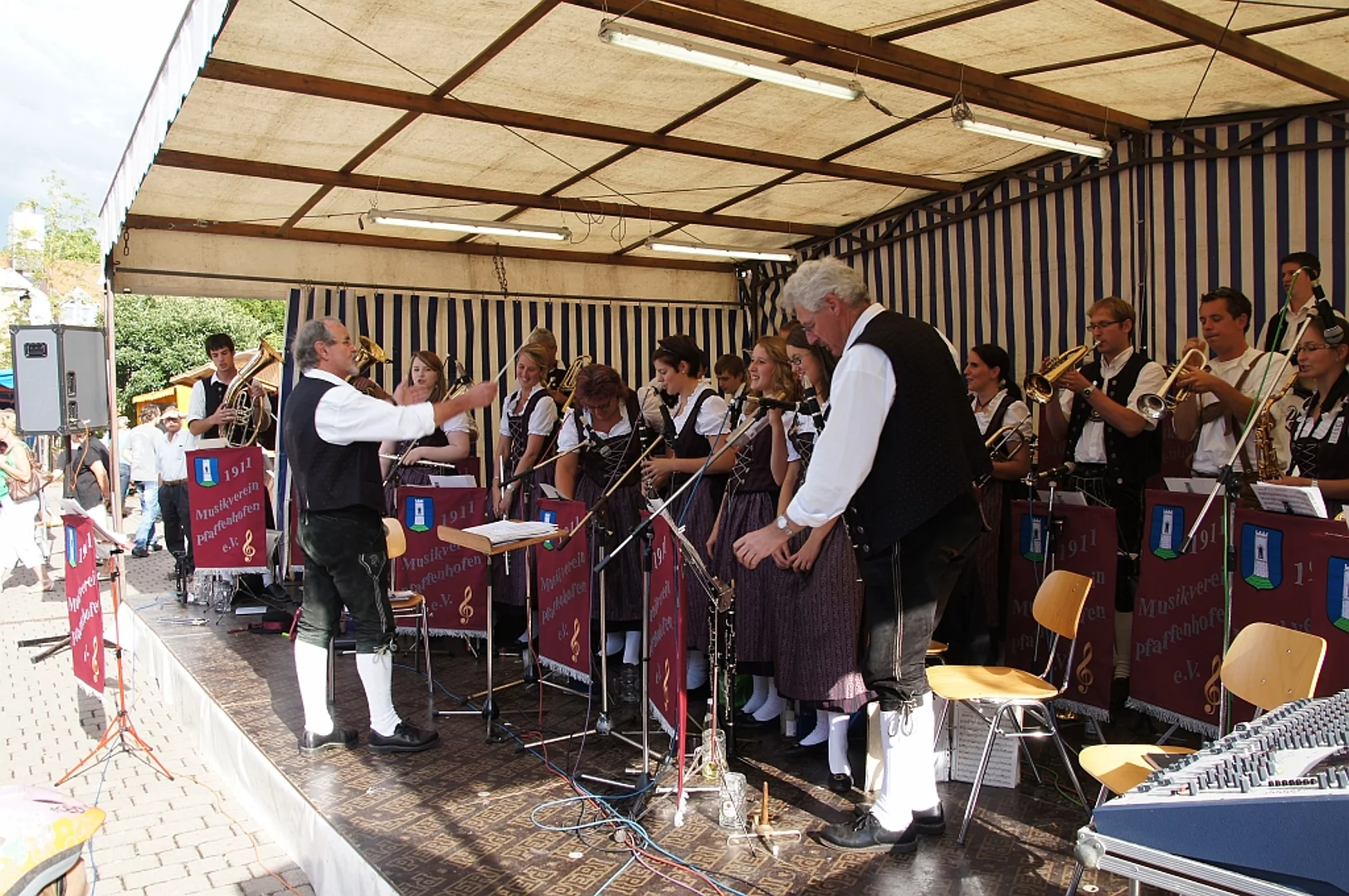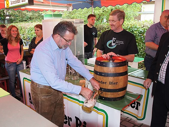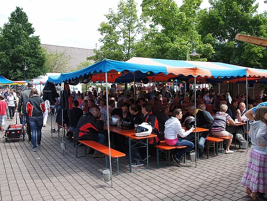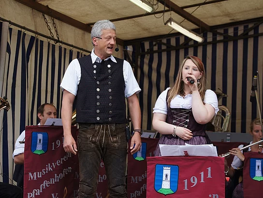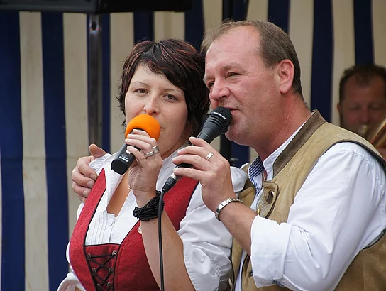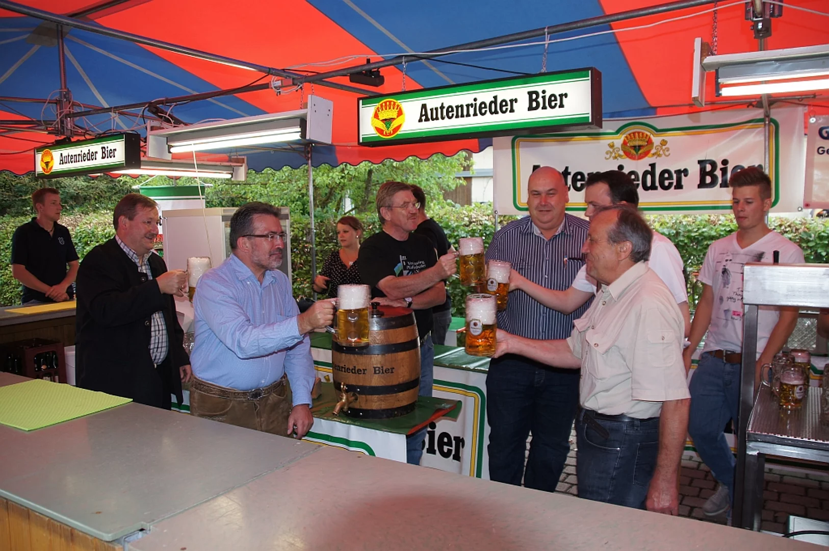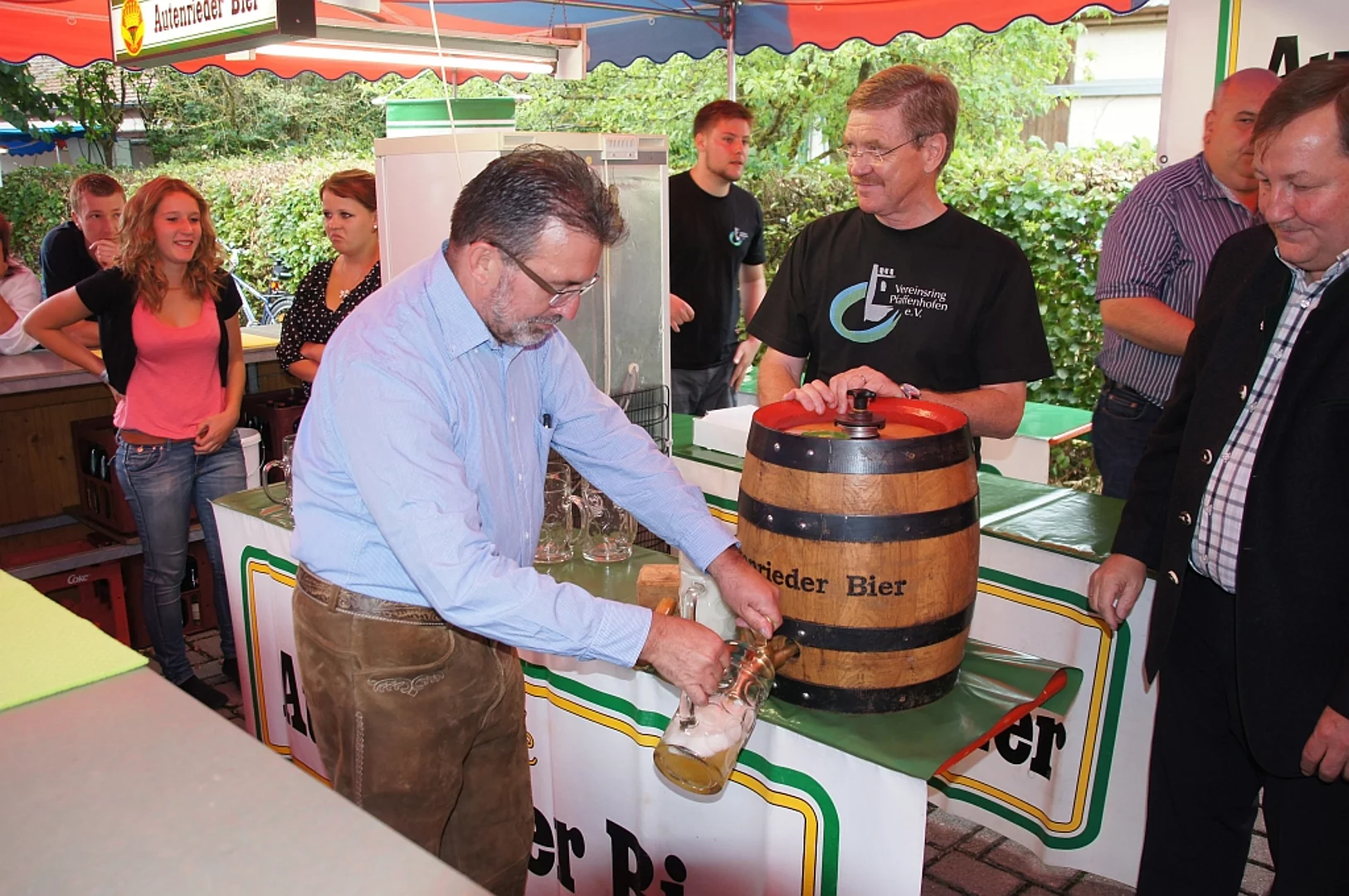 Endlich mal wieder ein Marktfest, das vom Wetter begünstigt war. Nachdem es am Freitagvormittag noch etwas geregnet hatte war pünktlich zum Bieranstich schönstes Wetter angesagt. Der Bieranstich war heuer in zweifacher Hinsicht etwas Besonderes. Zum einen gab es erstmal Autenrieder Bier auf dem Marktfest und zum anderen hatte der neue Pfarrer Reinfried Rimmel seine Premiere als Bieranstich-Assistent. Bürgermeister Josef Walz schaffte es mit seiner Hilfe und unter kritischer Beobachtung von Brauereichef Rudolph Feuchtmayer und Vereinsringvorsitzenden Karlheinz Thoma den Anstich mit einem einzigen gezielten Schlag zu bewältigen. Musikalisch ging es dann mit der Band "Soulkiss" weiter, der Festplatz füllte sich rasch und die Bänke blieben bis zum Ende sehr gut besetzt. Pünktlich zu diesem Ende öffnete der Himmel seine Schleusen und ermunterte damit die letzten Gäste zum Antreten des Heimweges. Bei wiederum sonnigen und warmen Wetter ging es am Samstagabend mit der Stimmungskapelle "Blechreiz" weiter. Diese war den Pfaffenhofenern bereits vom Jubiläum des Musikvereins Pfaffenhofen bekannt. Der Sonntag startete mit etwas Besonderem. Der katholische Gottesdienst fand auf dem Festplatz statt. An ihm nahmen neben den örtlichen Gläubigen viele Motorradfahrer teil, die dann anschließend zum großen Motorradcorso starteten. Dieser war mit etwa 300 teilnehmenden Motorradfahrern wieder sehr gut besucht. Musikalisch wurde der Festsonntag, wie die vergangenen Jahre, von den örtlichen Musikkapellen aus Kadeltshofen, Beuren und Pfaffenhofen gestaltet. Der Vereinsringvorsitzende Karlheinz Thoma zeigte sich mit dem Verlauf des festes überaus zufrieden, er merkte an, dass das Fest heuer das friedlichste und am ruhigsten verlaufene gewesen sei seit er dafür verantwortlich zeichne.
