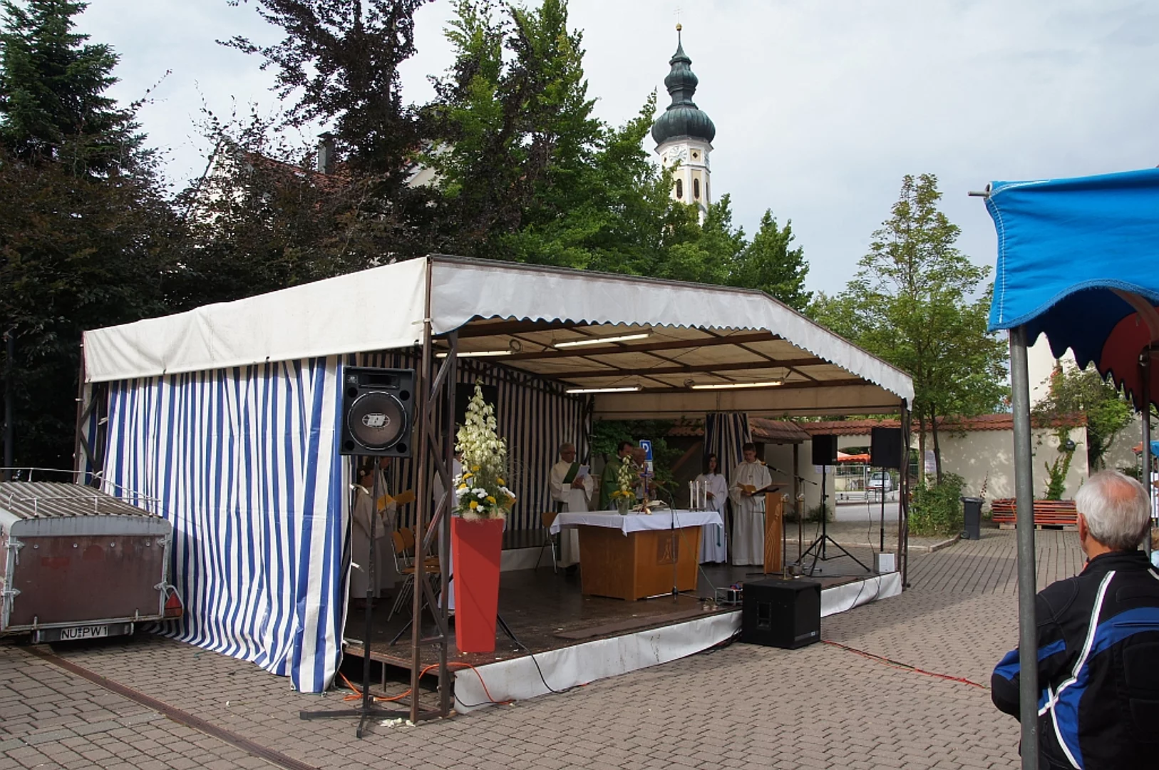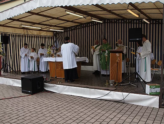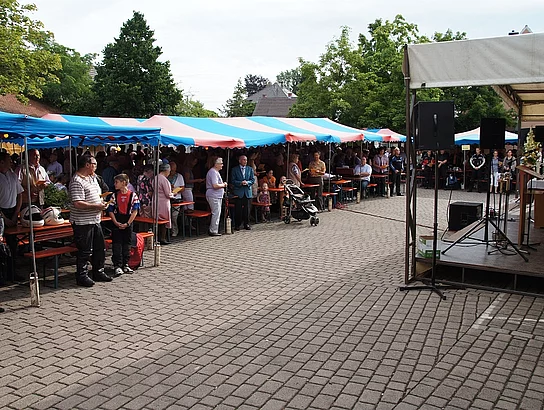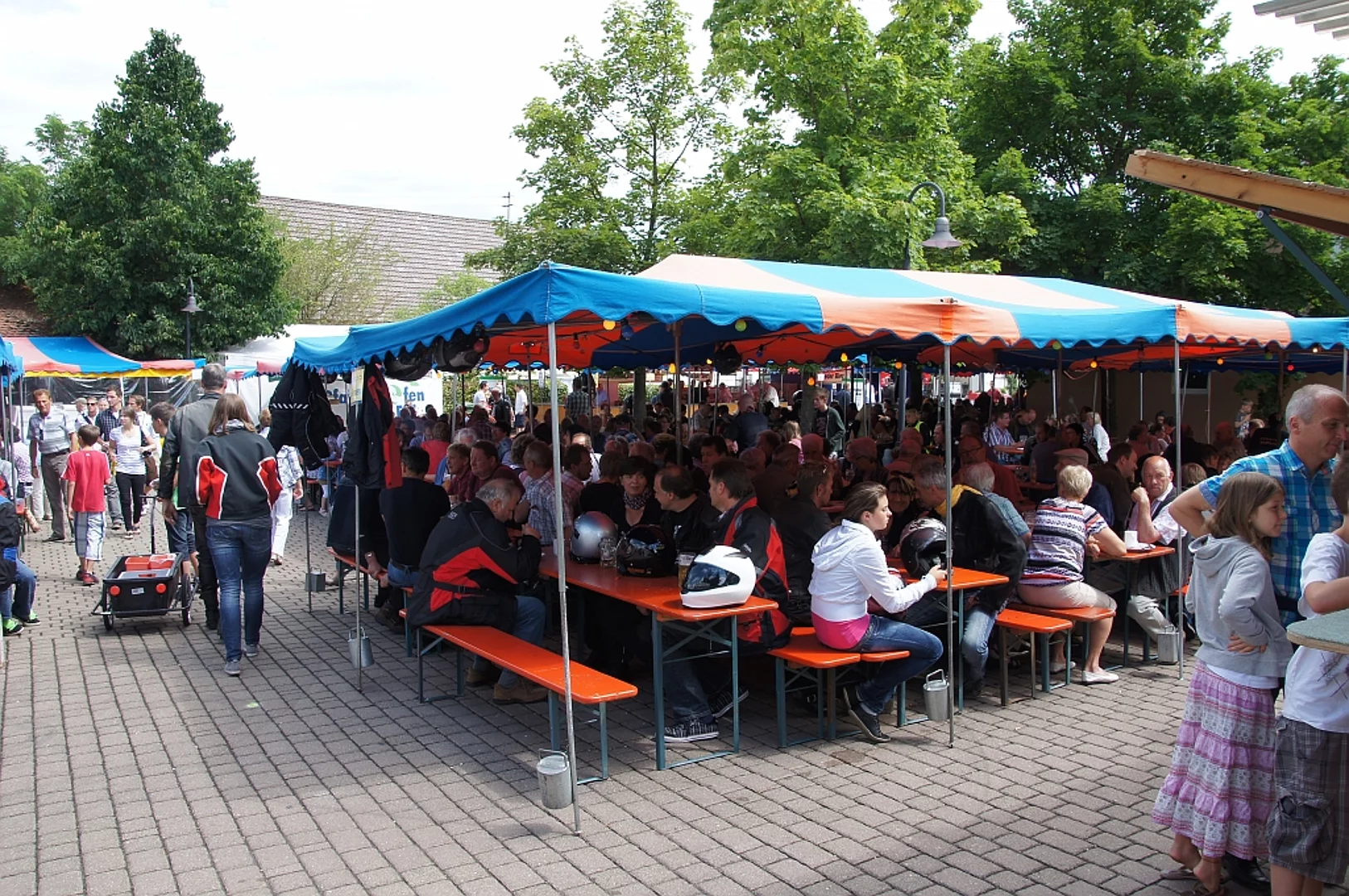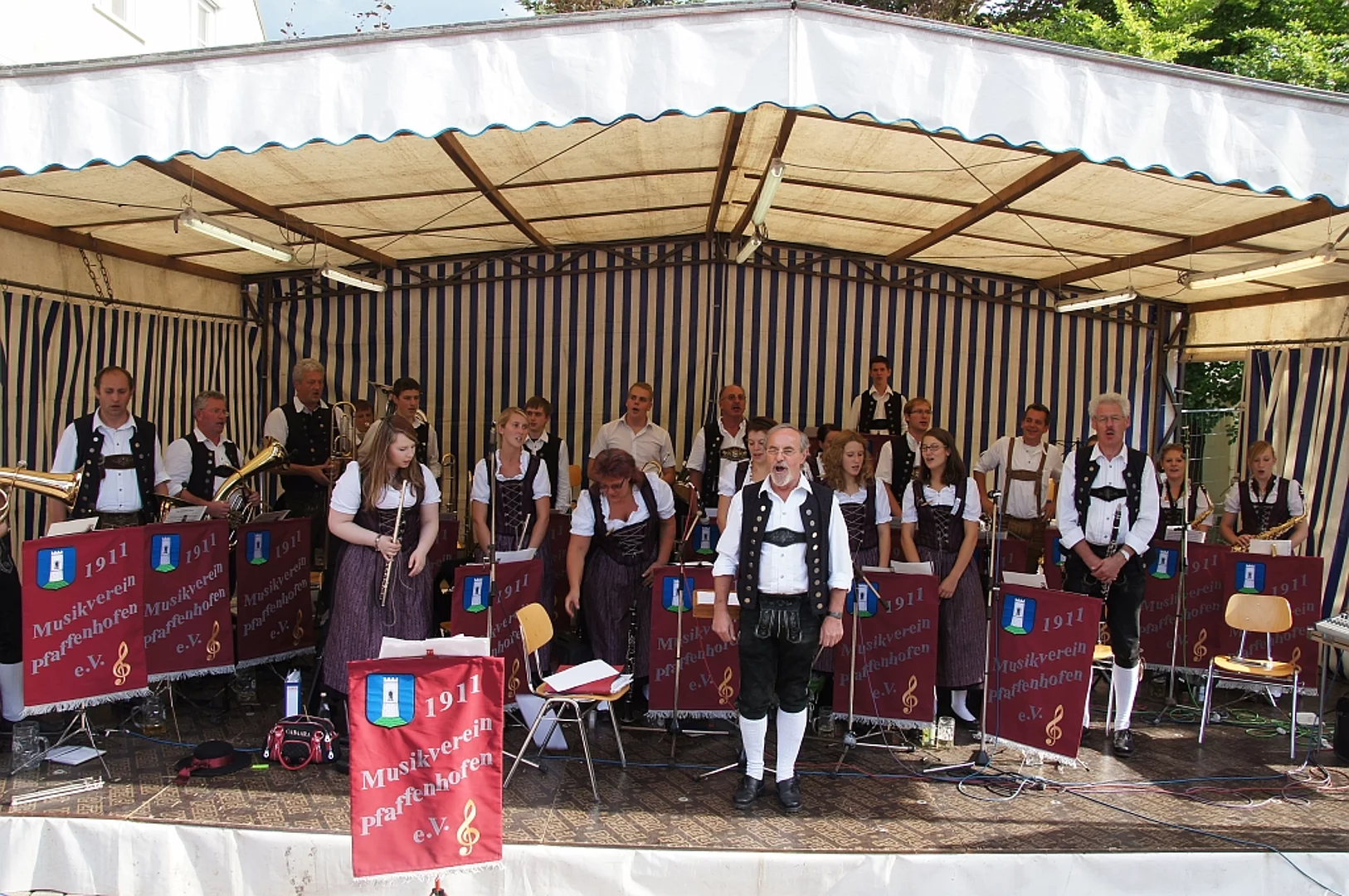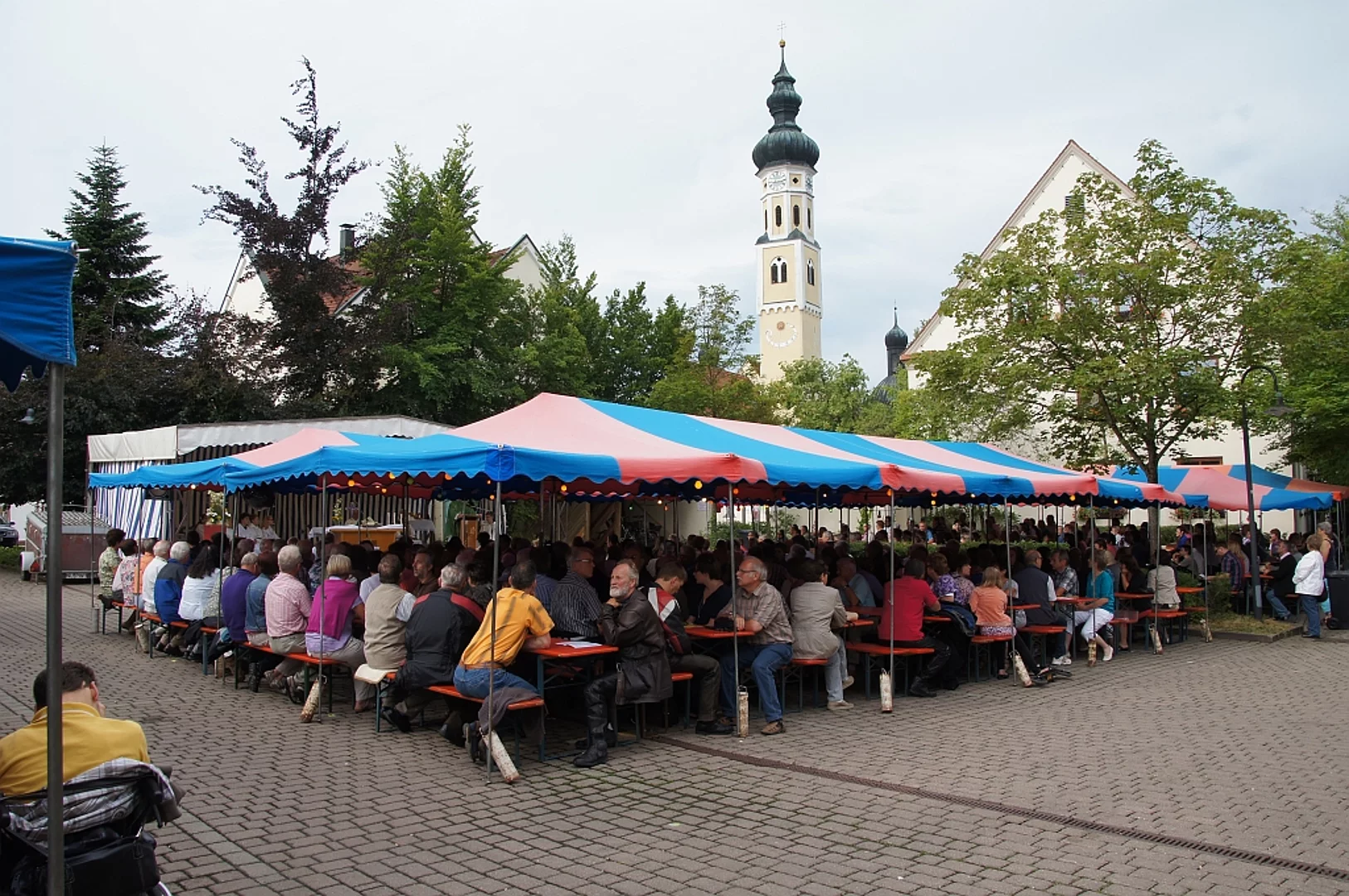 Endlich mal wieder ein Marktfest, das vom Wetter begünstigt war. Nachdem es am Freitagvormittag noch etwas geregnet hatte war pünktlich zum Bieranstich schönstes Wetter angesagt. Der Bieranstich war heuer in zweifacher Hinsicht etwas Besonderes. Zum einen gab es erstmal Autenrieder Bier auf dem Marktfest und zum anderen hatte der neue Pfarrer Reinfried Rimmel seine Premiere als Bieranstich-Assistent. Bürgermeister Josef Walz schaffte es mit seiner Hilfe und unter kritischer Beobachtung von Brauereichef Rudolph Feuchtmayer und Vereinsringvorsitzenden Karlheinz Thoma den Anstich mit einem einzigen gezielten Schlag zu bewältigen. Musikalisch ging es dann mit der Band "Soulkiss" weiter, der Festplatz füllte sich rasch und die Bänke blieben bis zum Ende sehr gut besetzt. Pünktlich zu diesem Ende öffnete der Himmel seine Schleusen und ermunterte damit die letzten Gäste zum Antreten des Heimweges. Bei wiederum sonnigen und warmen Wetter ging es am Samstagabend mit der Stimmungskapelle "Blechreiz" weiter. Diese war den Pfaffenhofenern bereits vom Jubiläum des Musikvereins Pfaffenhofen bekannt. Der Sonntag startete mit etwas Besonderem. Der katholische Gottesdienst fand auf dem Festplatz statt. An ihm nahmen neben den örtlichen Gläubigen viele Motorradfahrer teil, die dann anschließend zum großen Motorradcorso starteten. Dieser war mit etwa 300 teilnehmenden Motorradfahrern wieder sehr gut besucht. Musikalisch wurde der Festsonntag, wie die vergangenen Jahre, von den örtlichen Musikkapellen aus Kadeltshofen, Beuren und Pfaffenhofen gestaltet. Der Vereinsringvorsitzende Karlheinz Thoma zeigte sich mit dem Verlauf des festes überaus zufrieden, er merkte an, dass das Fest heuer das friedlichste und am ruhigsten verlaufene gewesen sei seit er dafür verantwortlich zeichne.