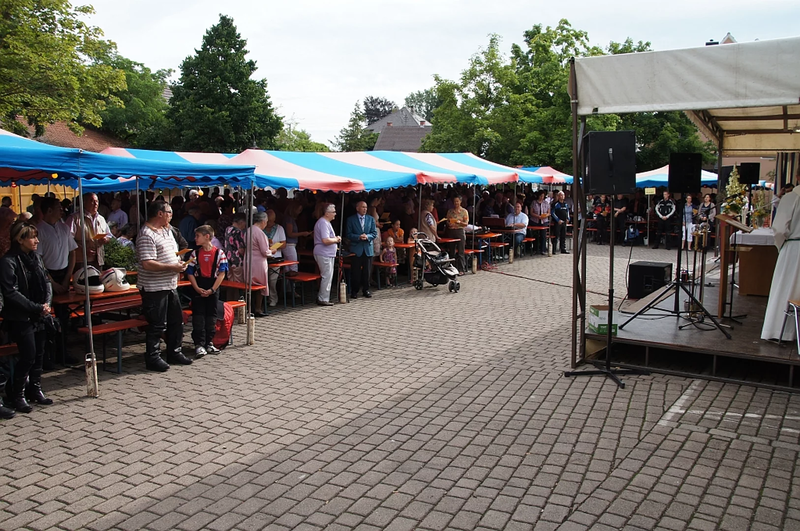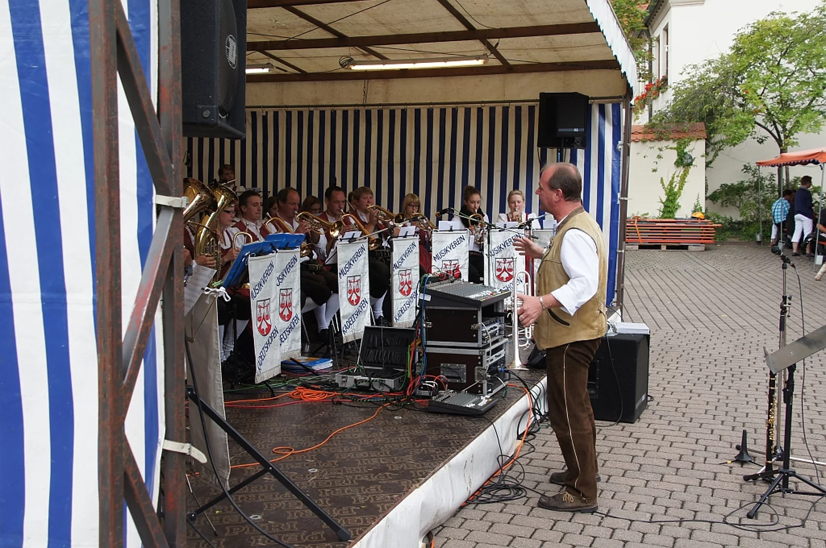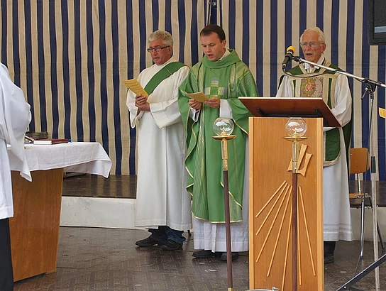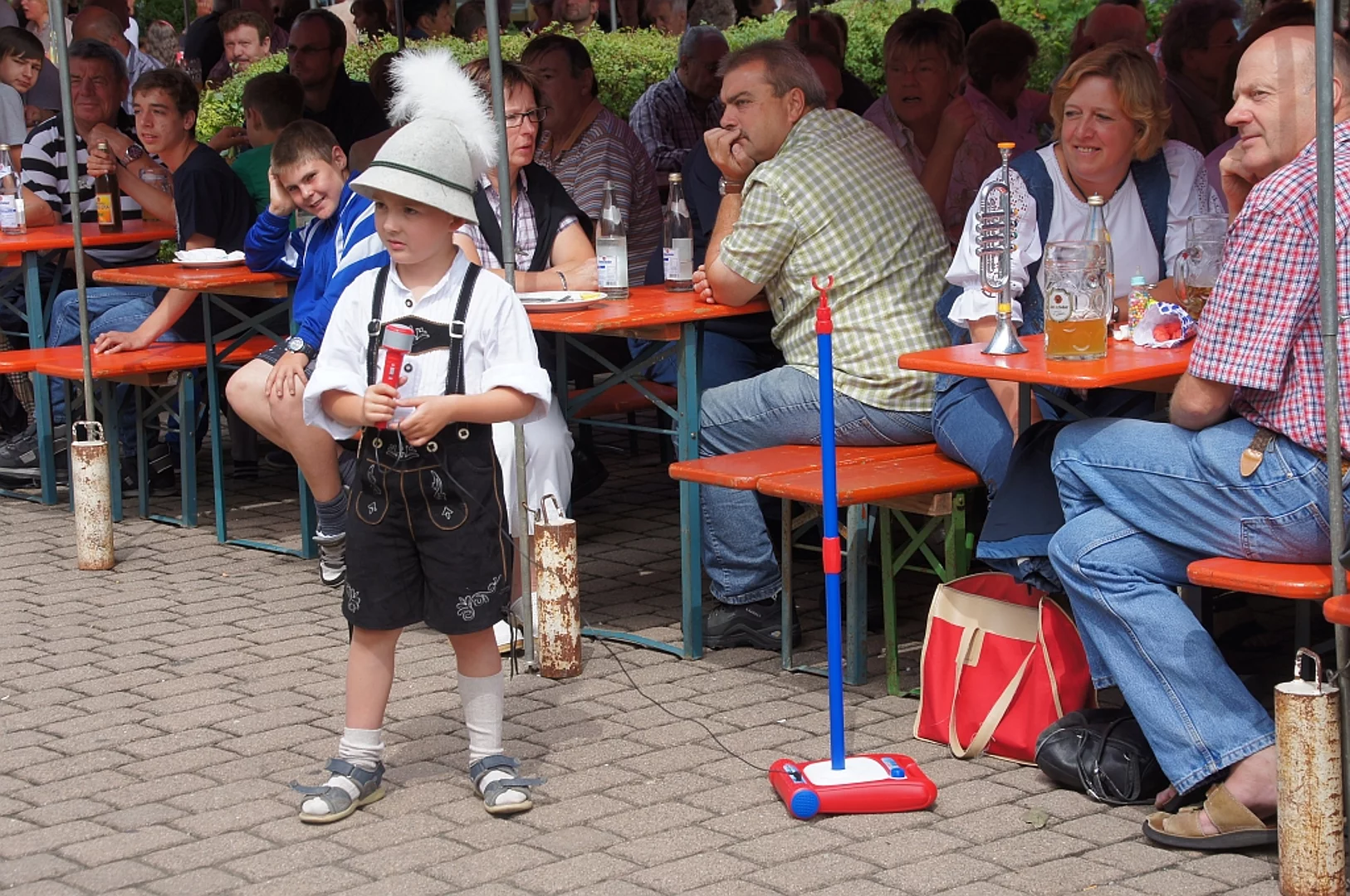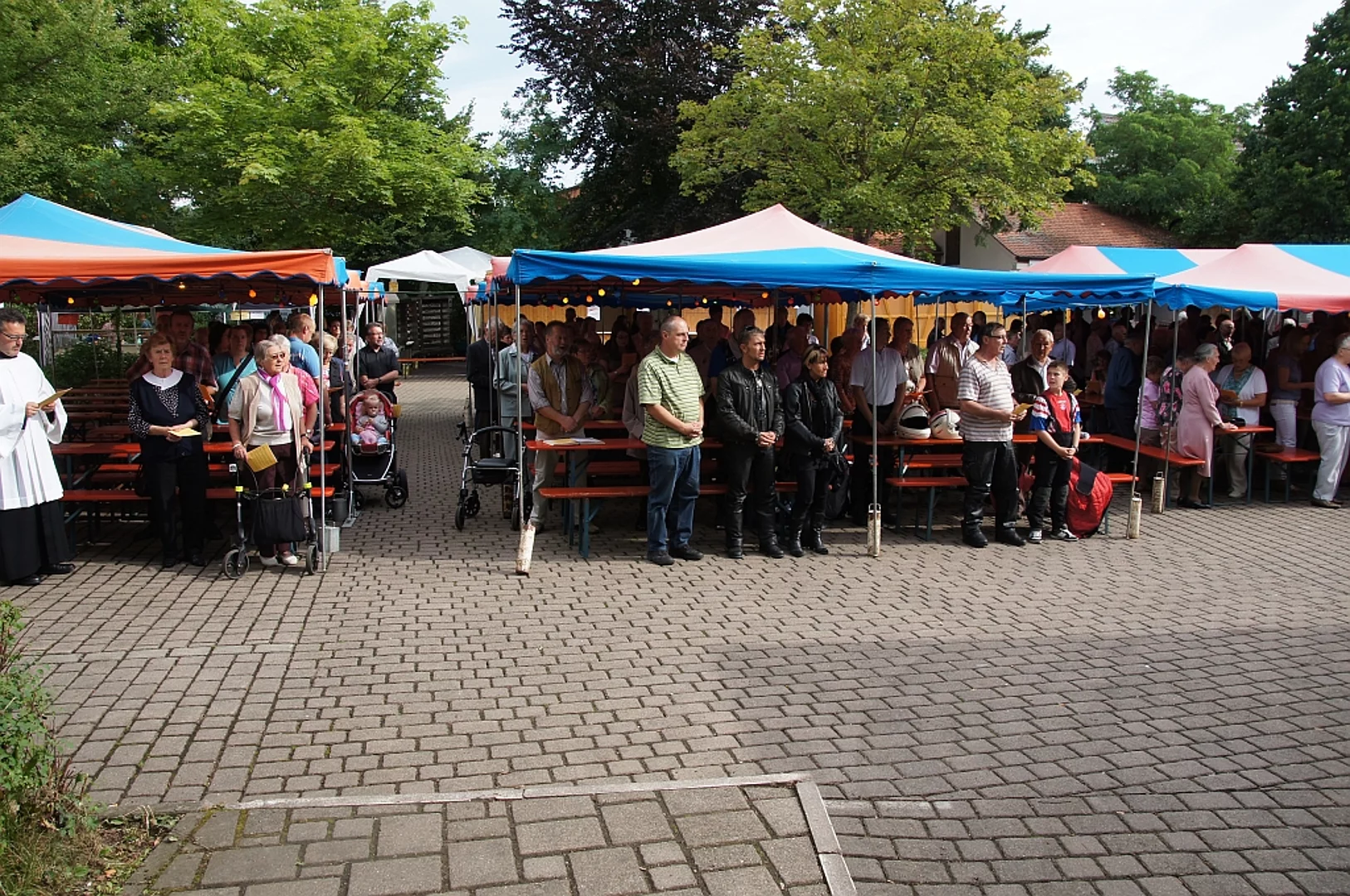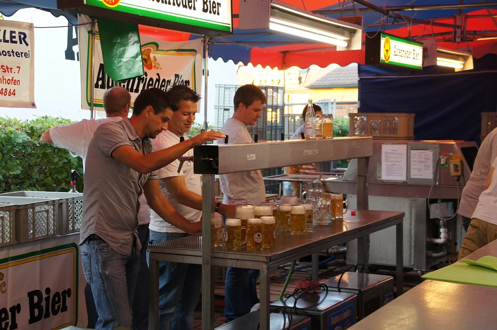 Endlich mal wieder ein Marktfest, das vom Wetter begünstigt war. Nachdem es am Freitagvormittag noch etwas geregnet hatte war pünktlich zum Bieranstich schönstes Wetter angesagt. Der Bieranstich war heuer in zweifacher Hinsicht etwas Besonderes. Zum einen gab es erstmal Autenrieder Bier auf dem Marktfest und zum anderen hatte der neue Pfarrer Reinfried Rimmel seine Premiere als Bieranstich-Assistent. Bürgermeister Josef Walz schaffte es mit seiner Hilfe und unter kritischer Beobachtung von Brauereichef Rudolph Feuchtmayer und Vereinsringvorsitzenden Karlheinz Thoma den Anstich mit einem einzigen gezielten Schlag zu bewältigen. Musikalisch ging es dann mit der Band "Soulkiss" weiter, der Festplatz füllte sich rasch und die Bänke blieben bis zum Ende sehr gut besetzt. Pünktlich zu diesem Ende öffnete der Himmel seine Schleusen und ermunterte damit die letzten Gäste zum Antreten des Heimweges. Bei wiederum sonnigen und warmen Wetter ging es am Samstagabend mit der Stimmungskapelle "Blechreiz" weiter. Diese war den Pfaffenhofenern bereits vom Jubiläum des Musikvereins Pfaffenhofen bekannt. Der Sonntag startete mit etwas Besonderem. Der katholische Gottesdienst fand auf dem Festplatz statt. An ihm nahmen neben den örtlichen Gläubigen viele Motorradfahrer teil, die dann anschließend zum großen Motorradcorso starteten. Dieser war mit etwa 300 teilnehmenden Motorradfahrern wieder sehr gut besucht. Musikalisch wurde der Festsonntag, wie die vergangenen Jahre, von den örtlichen Musikkapellen aus Kadeltshofen, Beuren und Pfaffenhofen gestaltet. Der Vereinsringvorsitzende Karlheinz Thoma zeigte sich mit dem Verlauf des festes überaus zufrieden, er merkte an, dass das Fest heuer das friedlichste und am ruhigsten verlaufene gewesen sei seit er dafür verantwortlich zeichne.