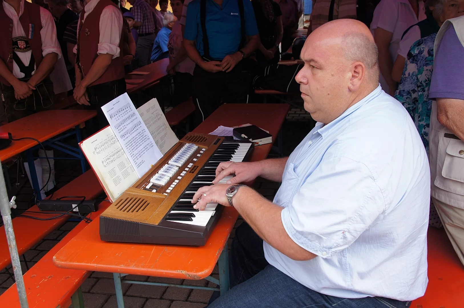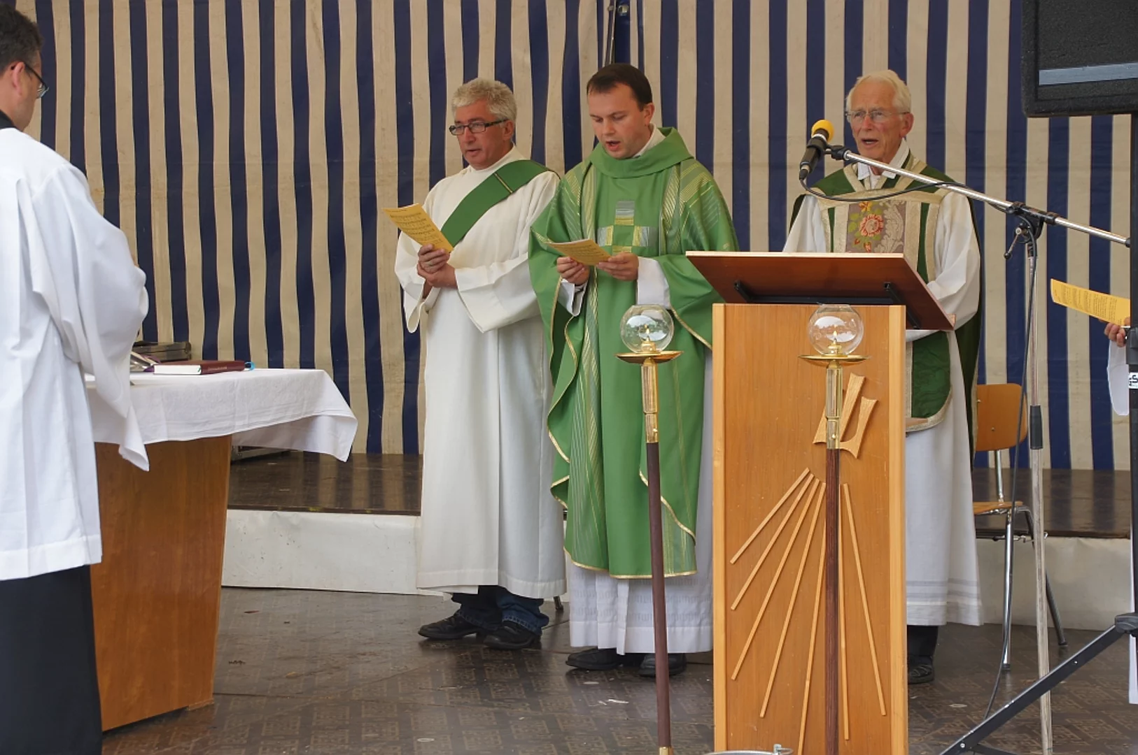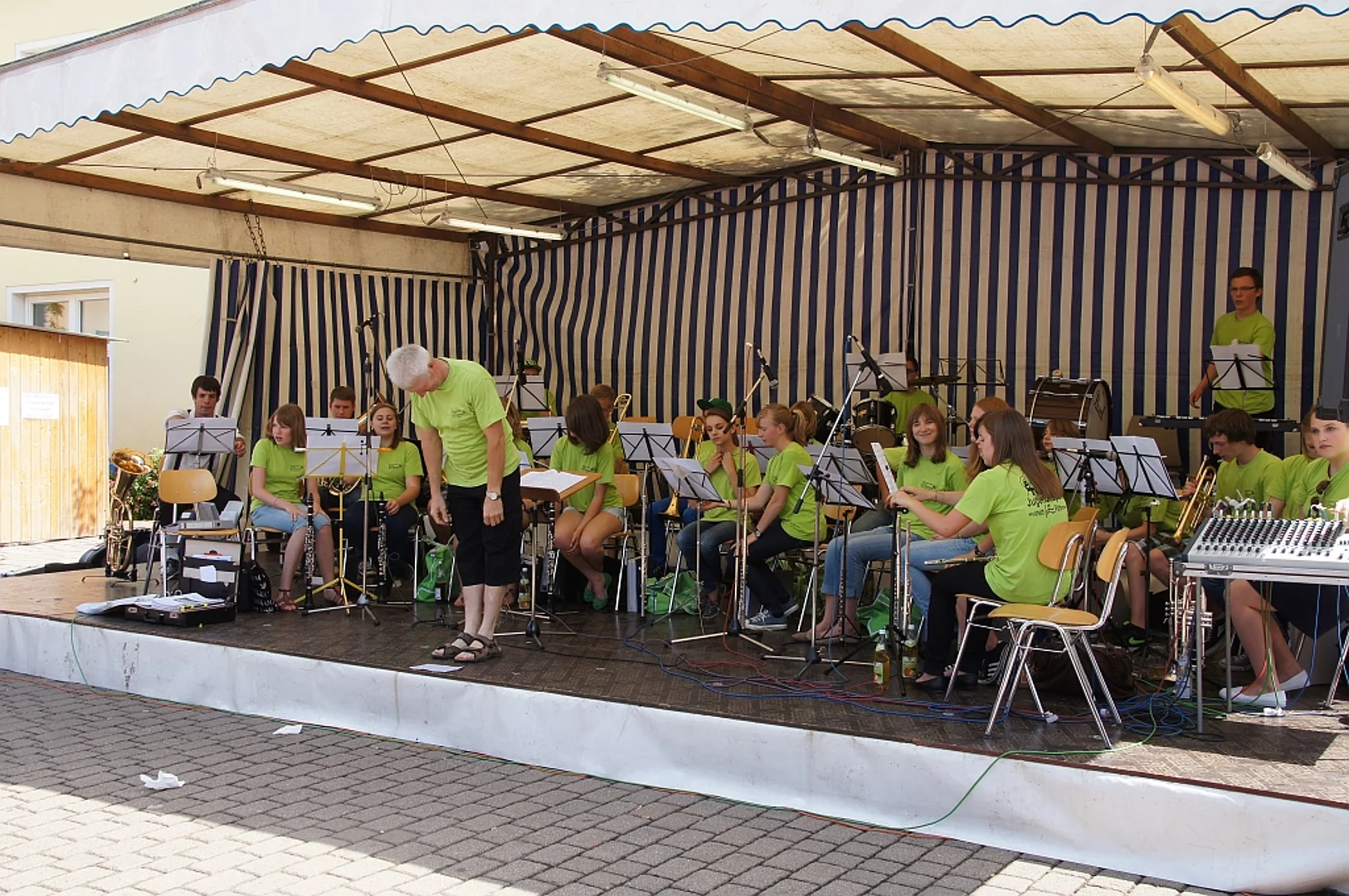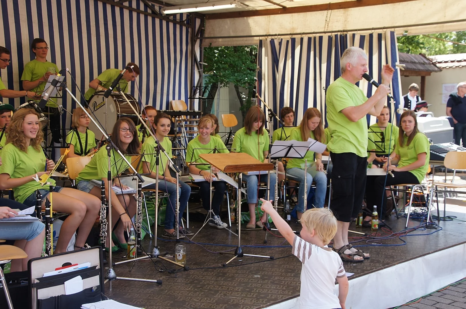 Endlich mal wieder ein Marktfest, das vom Wetter begünstigt war. Nachdem es am Freitagvormittag noch etwas geregnet hatte war pünktlich zum Bieranstich schönstes Wetter angesagt. Der Bieranstich war heuer in zweifacher Hinsicht etwas Besonderes. Zum einen gab es erstmal Autenrieder Bier auf dem Marktfest und zum anderen hatte der neue Pfarrer Reinfried Rimmel seine Premiere als Bieranstich-Assistent. Bürgermeister Josef Walz schaffte es mit seiner Hilfe und unter kritischer Beobachtung von Brauereichef Rudolph Feuchtmayer und Vereinsringvorsitzenden Karlheinz Thoma den Anstich mit einem einzigen gezielten Schlag zu bewältigen. Musikalisch ging es dann mit der Band "Soulkiss" weiter, der Festplatz füllte sich rasch und die Bänke blieben bis zum Ende sehr gut besetzt. Pünktlich zu diesem Ende öffnete der Himmel seine Schleusen und ermunterte damit die letzten Gäste zum Antreten des Heimweges. Bei wiederum sonnigen und warmen Wetter ging es am Samstagabend mit der Stimmungskapelle "Blechreiz" weiter. Diese war den Pfaffenhofenern bereits vom Jubiläum des Musikvereins Pfaffenhofen bekannt. Der Sonntag startete mit etwas Besonderem. Der katholische Gottesdienst fand auf dem Festplatz statt. An ihm nahmen neben den örtlichen Gläubigen viele Motorradfahrer teil, die dann anschließend zum großen Motorradcorso starteten. Dieser war mit etwa 300 teilnehmenden Motorradfahrern wieder sehr gut besucht. Musikalisch wurde der Festsonntag, wie die vergangenen Jahre, von den örtlichen Musikkapellen aus Kadeltshofen, Beuren und Pfaffenhofen gestaltet. Der Vereinsringvorsitzende Karlheinz Thoma zeigte sich mit dem Verlauf des festes überaus zufrieden, er merkte an, dass das Fest heuer das friedlichste und am ruhigsten verlaufene gewesen sei seit er dafür verantwortlich zeichne.