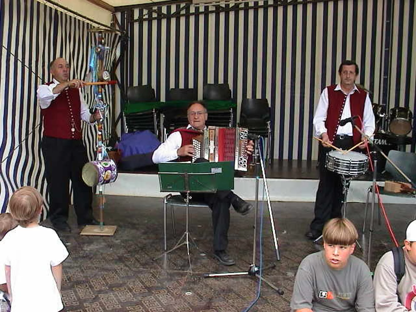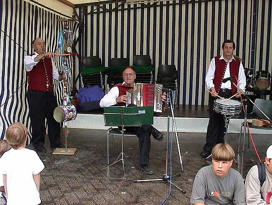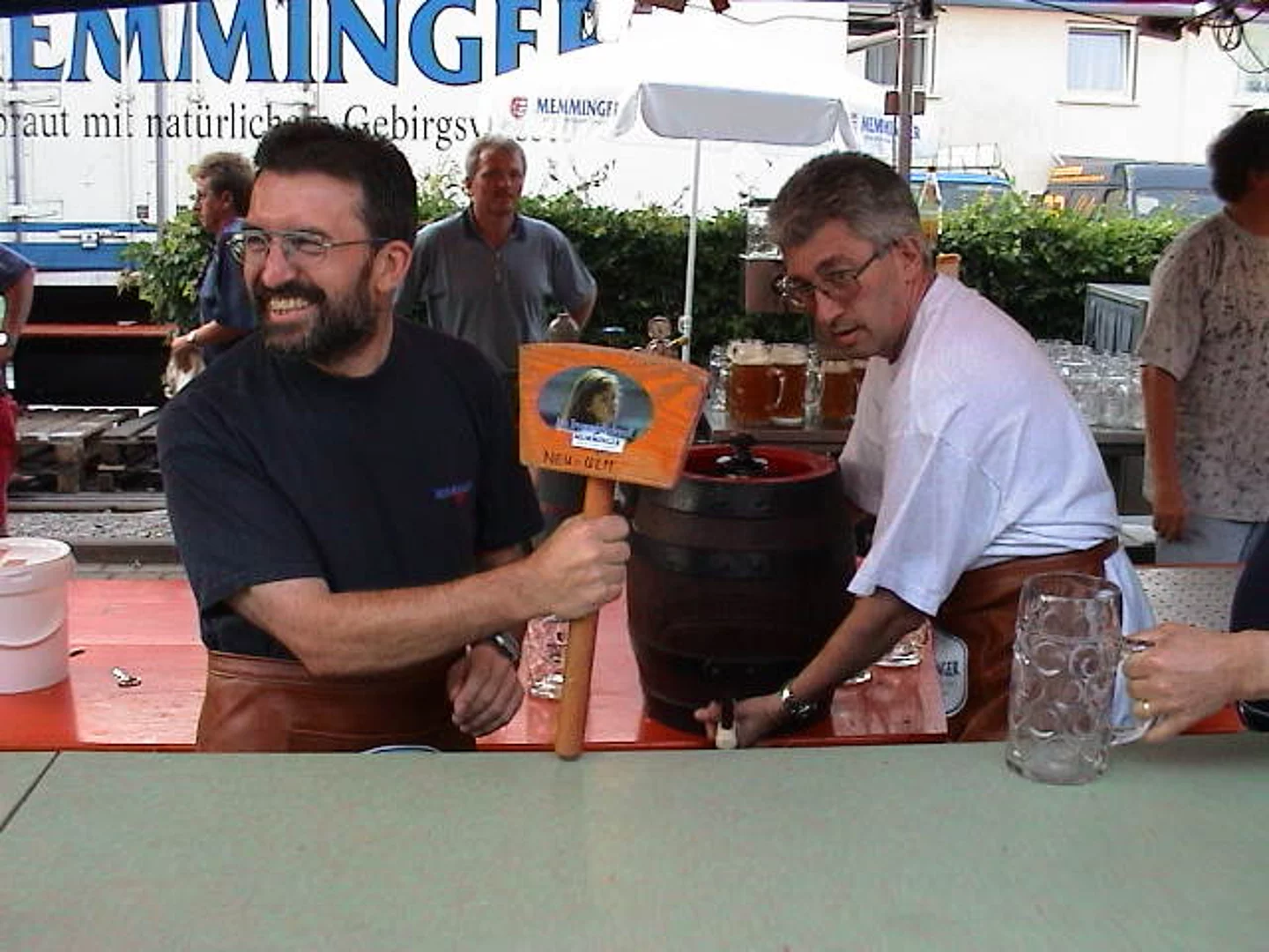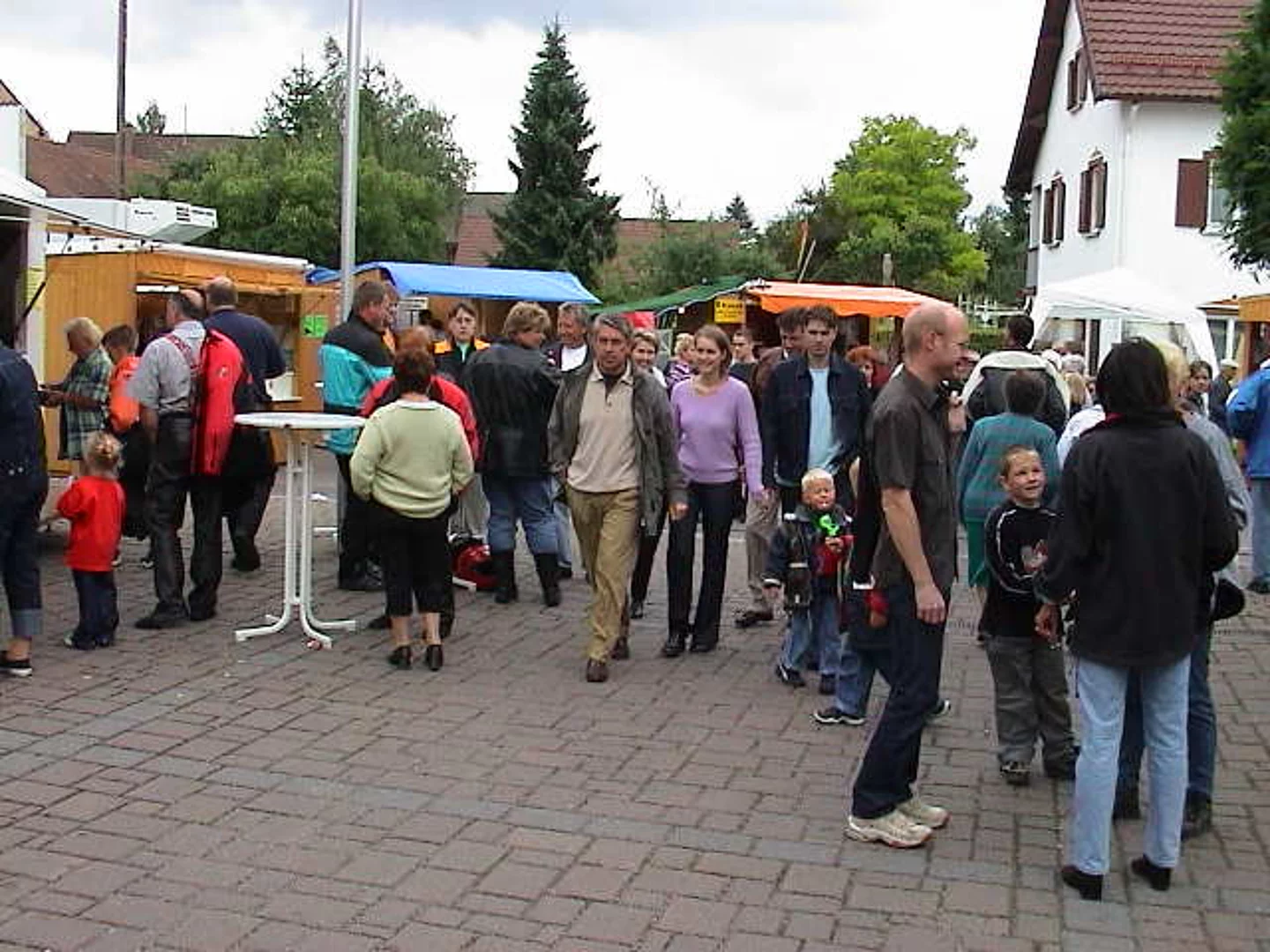 Ganz anders präsentierte sich der Samstag wettermäßig. Nach starken Regengüssen am Nachmittag war es erheblich abgekühlt. Aber rechtzeitig zum "Abend der nachbarschaftlichen Verbundenheit" mit der Schützenkapelle Holzheim hörte der Regen auf. So füllte sich der Festplatz noch überraschend gut, wenn sich dann auch das Feiern rasch ins geschützte Weinzelt des Liederkranzes verlagerte.