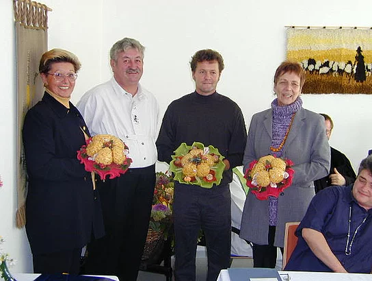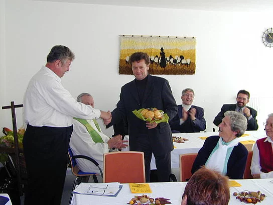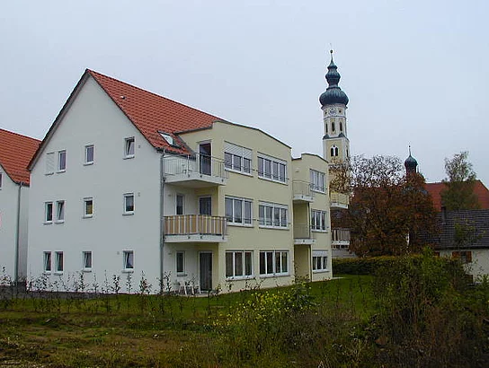 Nach etwa eineinhalb Jahren Bauzeit konnte nun die Wohnanlage für Betreutes Wohnen in Pfaffenhofen eingeweiht werden. 18 Wohneinheiten und mehrere Gemeinschaftsräume sind in der Anlage zusammengefasst. Zur großen Freude des Architekten und Bauträgers Hermann Spiegler ist die Anlage bereits zu 90 Prozent besetzt. In seiner Ansprache verwies er auf die ideale lage im Zentrum der Gemeinde, Pfarrkirche, Rathaus, Arztpraxen, Apotheke und Geschäfte seien leicht zu Fuß erreichbar. Das Studium statistischer Zahlen habe ergeben, dass Pfaffenhofen eine solche Einrichtung brauche. Er sei das Risiko eingegangen, deshalb freue er sich jetzt besonders, dass Leben im Haus sei. Gleich bei Baubeginn habe es einen ersten Schreck gegeben. Beim Ausheben der Baugrube war man auf einen Gewölbekeller gestoßen, der der erst befüllt werden musste. Erfreut zeigte sich Pfarrer Egger über die Zufriedenheit und Harmonie, die bereits jetzt im Kreise der Bewohner herrsche. Pfarrer Erstling bedauerte, dass das soziale Netz immer größere Löcher bekomme und die Einstellung "das geht mich nichts an" eine weit verbreitete Grundhaltung sei. Umso wichtiger sei es, dass jeder einen Blick für den anderen habe. Dazu passte auch das Motto des Gottesdienstes "Einer trage des anderen Last". Bürgermeister Josef Walz hieb in die selbe Kerbe. "Die Familie ist kein sicherer Hort mehr für das Alter. Viele beenden ihr Leben in Einsamkeit.", sagte er. Da böten die vier Wände der betreuten Wohnanlage ein Zuhause. Betreuerin Ingeborg Sedelmayer von der Caritas Weißenhorn konnte für die Pflege der Sozialkontakte innerhalb der Anlage gewonnen werden. Als "gute Geister" betätigen sich die jüngsten Bewohner der Anlage, das Ehepaar Helga und Josef Baier. Sie sehen wo ein Mitbewohner Hilfe braucht und sind dann tatkräftig zur Stelle.