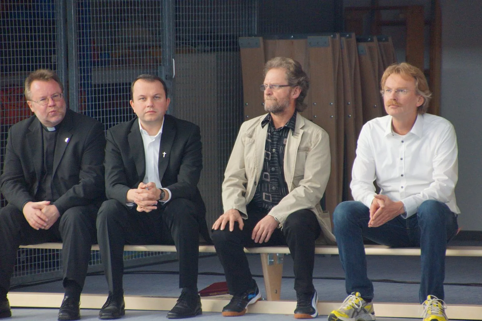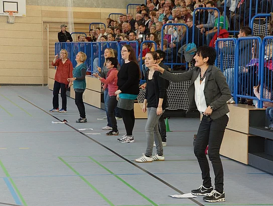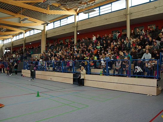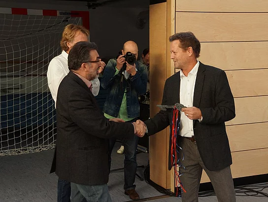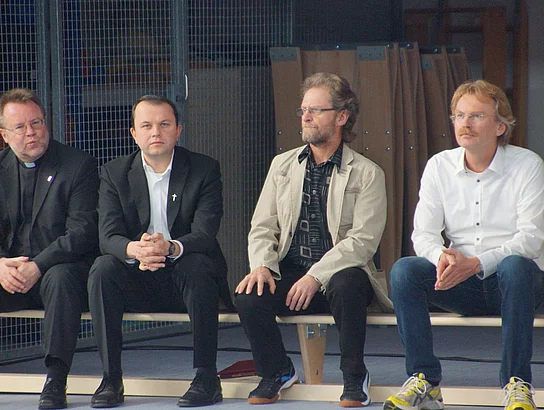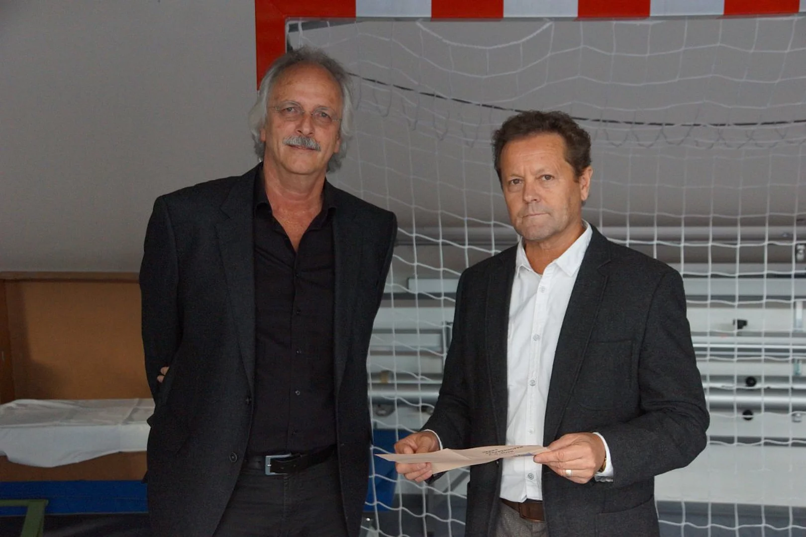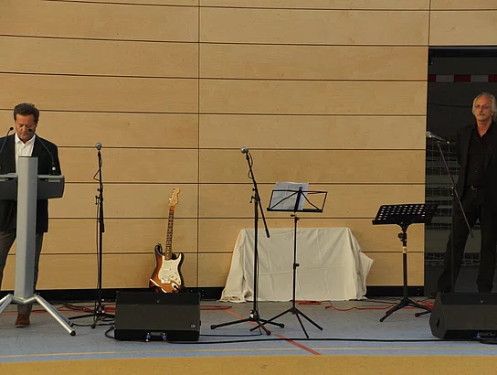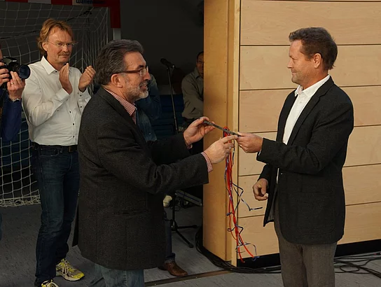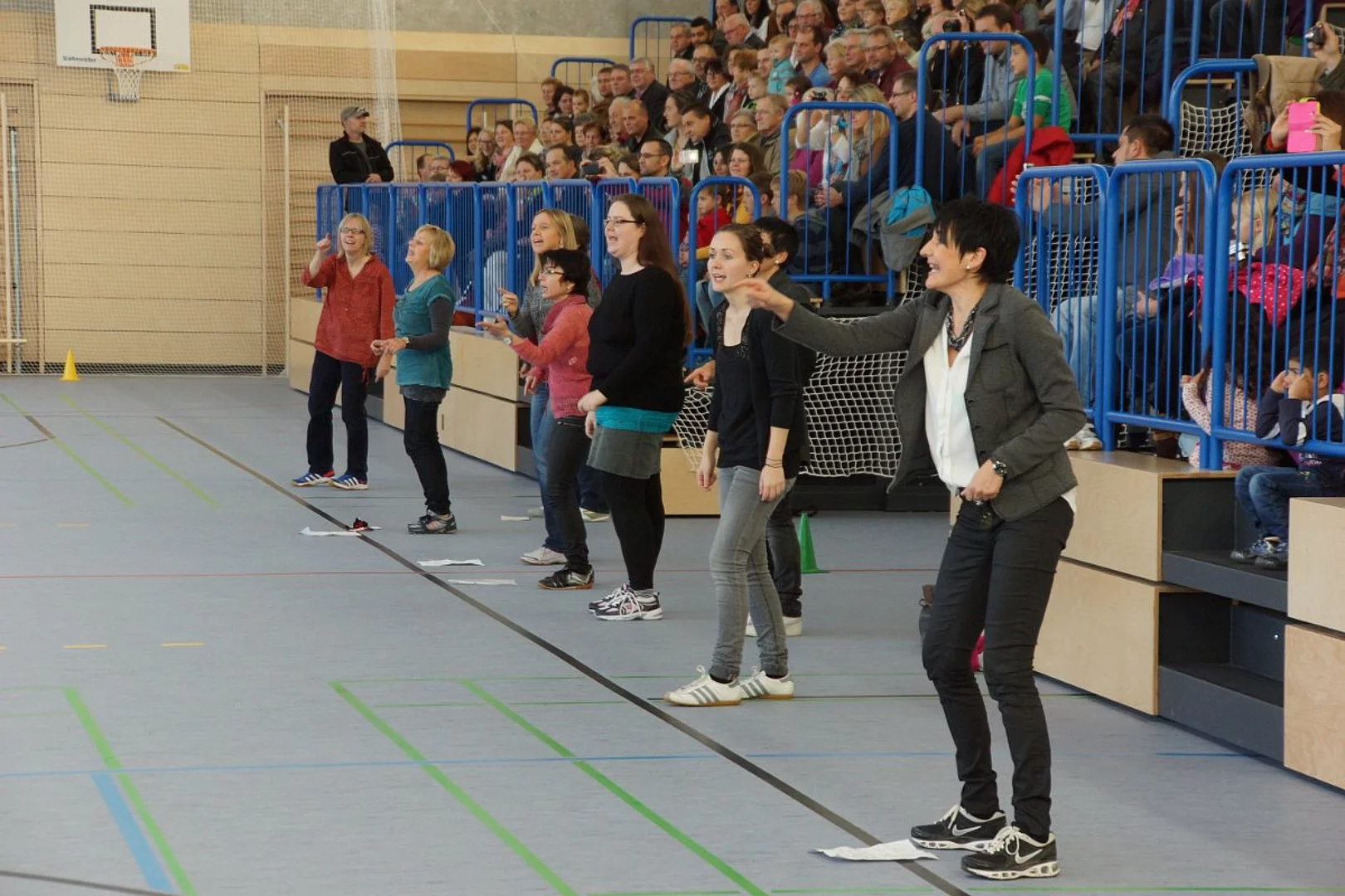 Eindringlich schilderte der Architekt die Lage der alten Halle. Dieser hatten nach einer ausgiebigen Party im März 2013 Bagger ein Ende gemacht. Als habe der Bau nach Jahrzehnten darum gebeten, abgerissen zu werden: „Mein Werk ist vollbracht, lasst mich sterben“, fasste Spiegler den Zustand des alten Bauwerks zusammen. Eine Sanierung habe sich als unwirtschaftlich herausgestellt, weshalb Abbruch und Neubau beschlossen wurden. Schulleiter Rolf Gassner, der neben Bürgermeister Walz neuer Hausherr der Halle ist, zeigte sich erleichtert, da mit der Einweihung nun eine schwierige Zeit ein gutes Ende finde. Denn ein Jahr ohne Turnhalle sei kein gutes Jahr. Gassner dankte der Gemeinde Holzheim und ihrer Bürgermeisterin Ursula Brauchle, die während der Bauzeit die Türe ihrer Sportstätte für die Schüler aus Pfaffenhofen geöffnet hatte: „Ohne Euch wäre ein Sportunterricht nicht möglich gewesen,“ sagte Gassner.