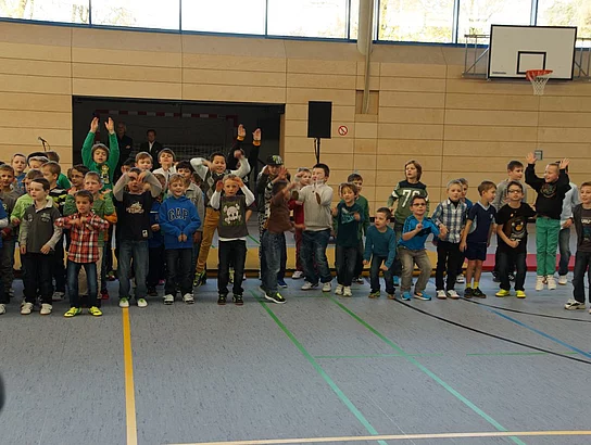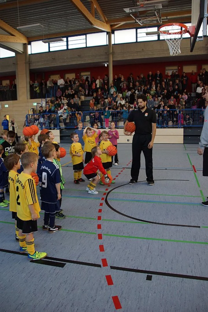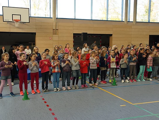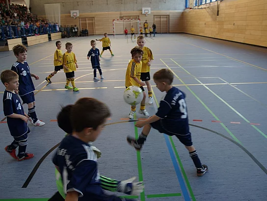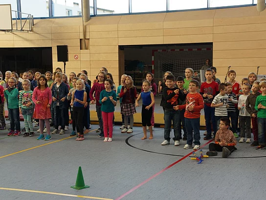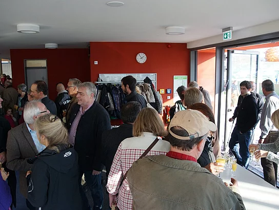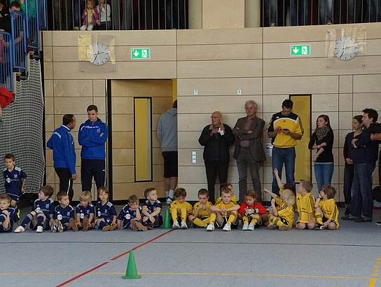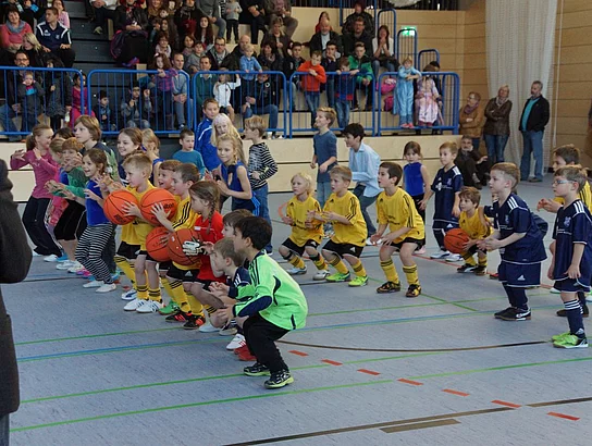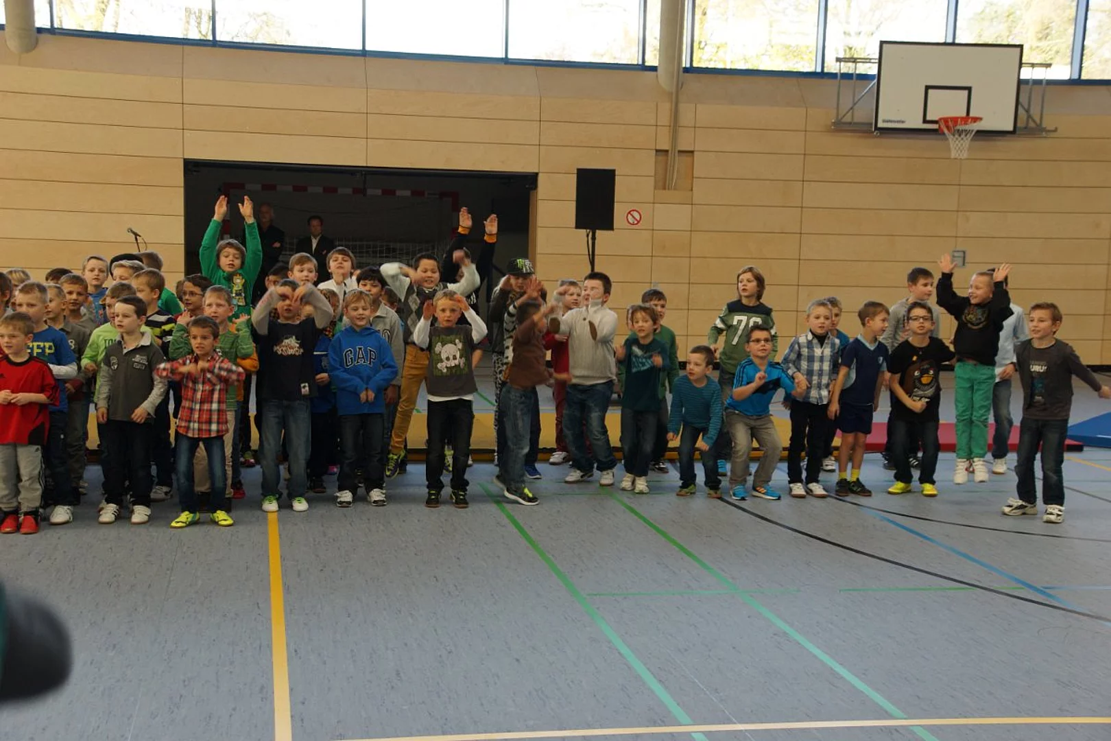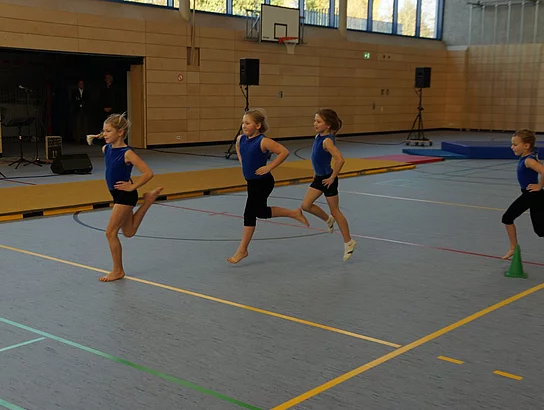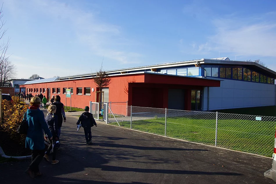 Großes Interesse fand die Feier zur offiziellen Eröffnung der neuen Zweifachsporthalle. Rund 600 Besucher strömten zum Neubau um die Einweihung mitzuerleben. Am Eingang wurden sie vom Dritten Bürgermeister Karlheinz Thoma mit einem Glas Sekt begrüßt, in der Halle wartete dann ein großes Programm auf sie. Die Turngruppe des SV Pfaffenhofen begeisterte mit einem rasanten Turnprogramm, die Bambini-Fußballer des SV Beuren und des SV Pfaffenhofen zeigten, dass die neue Halle für Fußball bestens geeignet ist. Von den Bürgern wurde besonders die Teleskoptribüne begrüßt, die jetzt jedem Besucher einen freien Blick auf das Geschehen gestattet. Für musikalische Unterhaltung sorgte die Allstar-Band und rockte die Halle. Bürgermeister Josef Walz nannte den Neubau ein „neues Fundament für das sportliche Leben in der Marktgemeinde“. Bei einer Länge von 44 Metern und einer Breite von 22 Metern sei jetzt genug Platz für jede Art von Ballsportarten. Dabei sei jeder Cent für die Sportförderung gut angelegt, betonte Walz. Rund vier Millionen Euro kostete die Markgemeinde der Neubau. Mit Blick auf die anwachsende Zahl von „Zivilisationserkrankungen“ wie etwa Fettleibigkeit oder motorische Probleme müsse das Motto lauten – „Sport hält fit“. Deshalb sei es die Aufgabe der Kommunen und Schulen, ein Angebot für kleine und große Sportler zu schaffen. Bei allen Trendsportarten sei die Grundlage der Leichtathletik unverzichtbar, sagte Walz. So könnte die Halle zu Höchstleistungen beflügeln – und schließlich bräuchte jedes Sportass auch einen Raum, um entdeckt zu werden. Auch wenn die Architektur die wahre Größe des Innenraumes nach außen nicht sichtbar mache. „Der Bau fügt sich harmonisch in die Umgebung ein“, freute sich Walz. Der Zugang wurde an die Oberkante des Hanges der Von-Hünefeld-Straße gelegt. Gegenüber öffnet sich die Fassade mit großzügiger Fensterfront zum Schulgelände hin. Die Verglasung zur Nordseite hin spart eine aufwendige Verschattung, erläuterte der Architekt Spiegler. Die Fußbodenheizung, die an die der Schule angeschlossen ist, sorge für Wärme, während eine Fotovoltaikanlage den Strom liefere.