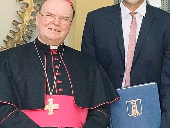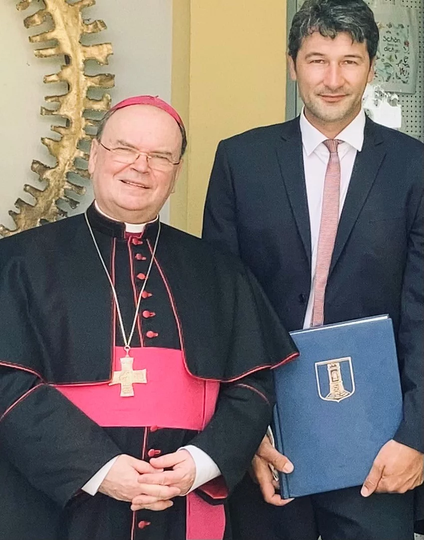 Im Juli des vergangenen Jahres verfasste Bischoff Bertram Meier eine Widmung für das Goldene Buch. Anlass gaben seine Besuche in Pfaffenhofen bei der Wiedereröffnung der Kirche St. Leonhard in Roth und in Marienfried zum Großen Gebetstag. Bischof Meier ist als langjähriger Stadtpfarrer in Neu-Ulm schon immer eng mit der Region verbunden.