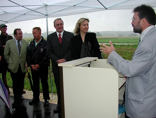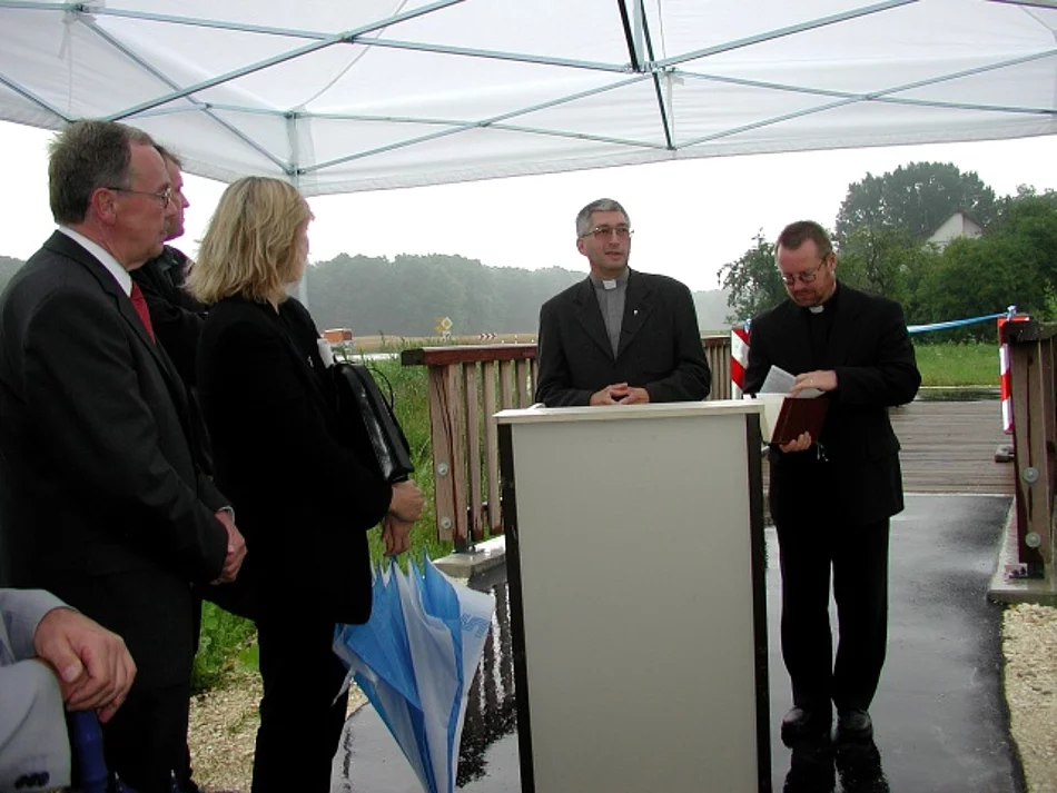 Zum Radfahren lud dieser regnerische Montag nicht gerade ein. Trotzdem war es für Radler ein erfreulicher Tag. Mit einem kleinen Festakt wurde der Radweg zwischen Holzschwang und Hirbishofen, der entlang der Kreisstraße NU 3 verläuft, seiner Bestimmung übergeben. Die Neu-Ulmer Oberbürgermeisterin Dr. Beate Merk, der Pfaffenhofener Bürgermeister Josef Walz und Peter Schmid als Vertreter des Landrats ließen es sich nicht nehmen, die Freigabe selbst vorzunehmen. Insgesamt wurden für den kombinierten Geh- und Radweg 223.000 Euro verbaut. Nach einhelliger Meinung ist dieses Geld im Sinne einer erhöhten Verkehrssicherheit gut angelegt. Den Segen erhielt der neue Weg von Pfarrer Andreas Erstling und Diakon Rolf.