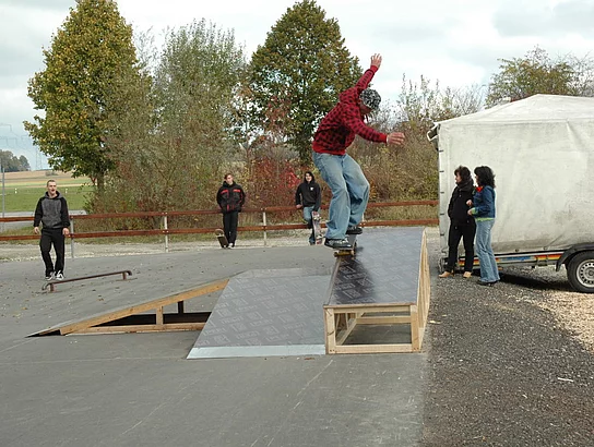 Seit diesem Samstag gibt es für die Pfaffenhofener Jugendlichen ganz offiziell ein neues Freizeitangebot. Bürgermeister Josef Walz und Vereinsringsvorsitzender Karlheinz Thoma über gaben den lang ersehnten Skaterplatz. Beharrlich vorangetrieben hatte das Projekt die Vorsitzende des SPD-Ortsverbands Pfaffenhofen Hildegard Feurich-Kähn. Karlheinz Thoma verwies darauf, dass den Kindern und Jugendlichen immer mehr die körperliche Beweglichkeit und der Gleichgewichtssinn abhanden kommt. "Über ein Drittel aller Kinder und Jugendlichen ab vier Jahren können nicht mehr auf einem Balken balancieren", zitierte er aus einer aktuellen Untersuchung. Ganz bewusst unterstützte der Vereinsring das Projekt dadurch, dass er nur die Kosten für das benötigte Material übernahm. So konnten die Jugendlichen die Hindernisse nach ihren Vorstellungen gestalten. Gleichzeitig werde damit die Eigenverantwortlichkeit unterstützt. "Wer etwas selber gemacht hat, übernimmt eher die Pflicht, Dinge pfleglich zu behandeln und sie vor Zerstörung zu schützen", so Thoma. Bürgermeister Josef Walz freute sich mit den Jugendlichen. "Die 10.000 Euro für die Befestigung des Platzes sind gut investiert, wenn man sieht, dass die Jugendlichen hier Spaß haben und sich körperlich betätigen", sagte Walz. Man habe mit Unterstützung der Pächtern des Parkplatzes bei den Sportanlagen, dem Sportverein und dem Tennisclub, die den Platz abtraten, das Projekt verwirklichen können. Unter der Regie von Fabian Endres und Alexander Thalhofer haben die Jugendlichen ihre Obstacles, eine Funbox mit Hip und seitlicher Curbledge, einen kleinen Quarter zum Anfahren und ein kleines Flatcurb in der Werkstatt von Erich Thalhofer, der diese großzügig zur Verfügung stellte, selber gebaut. Noch ist der Platz nicht komplett fertig, es sollen im Lauf der Zeit weitere Obstacles hinzukommen. Fertige Vorrichtungen für Skaterplätze seien immens teuer und würden in die Zehntausende gehen, wusste Skater Alexander Thalhofer. Besonders positiv empfand Fabian Endres, dass sie als Jugendliche selbst mitwirken konnten und nicht einfach etwas hingestellt bekamen.