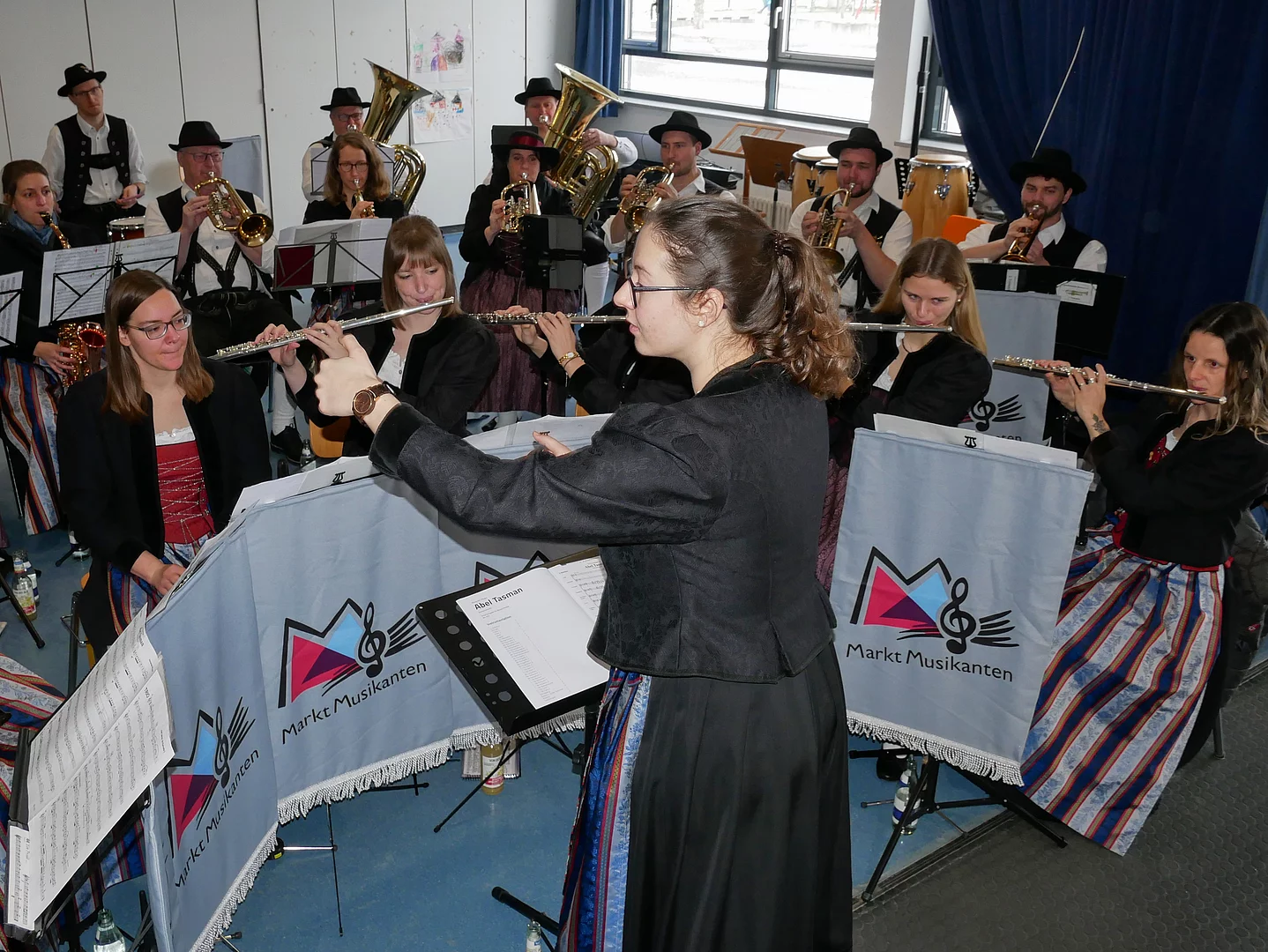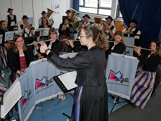 Musikalisch umrahmt wurde die Veranstaltung von den Marktmusikanten unter der Leitung von Dirigentin Franziska Span. Zu hören waren unter anderem die Stücke Abel Tasman, das Schwabenlied sowie der Jubiläumsmarsch. Zum Abschluss sangen die Gäste gemeinsam die Bayernhymne.