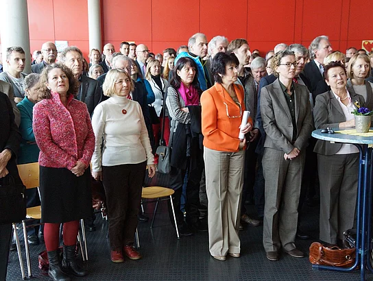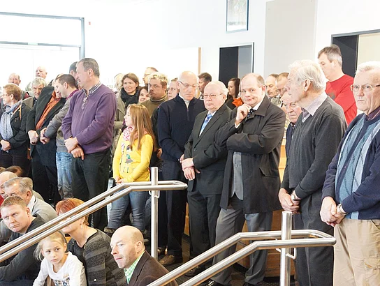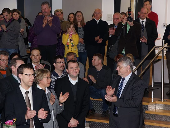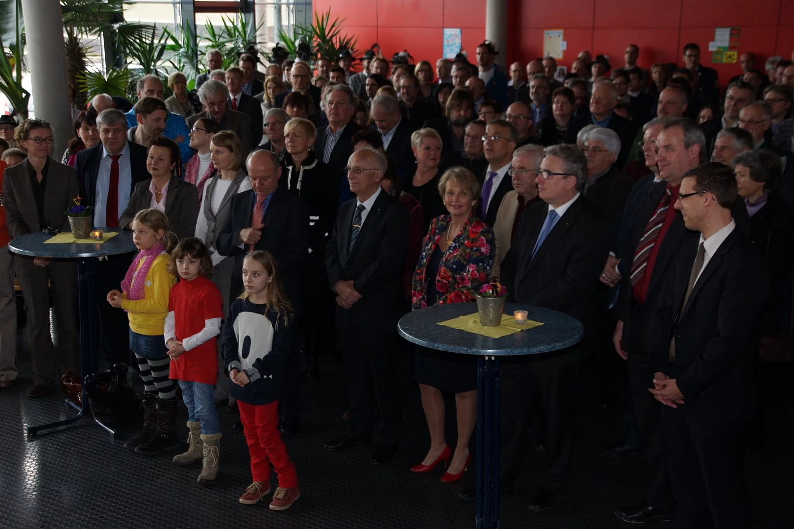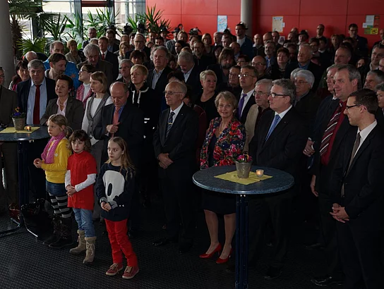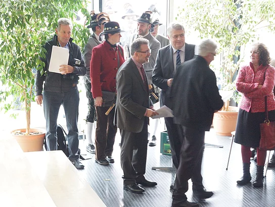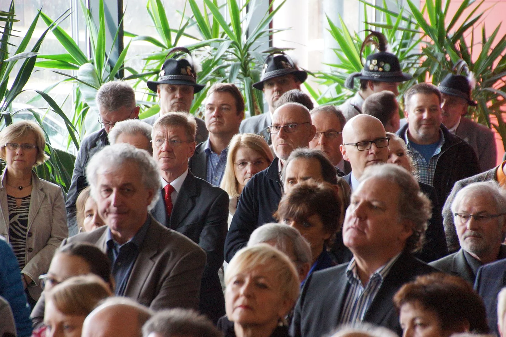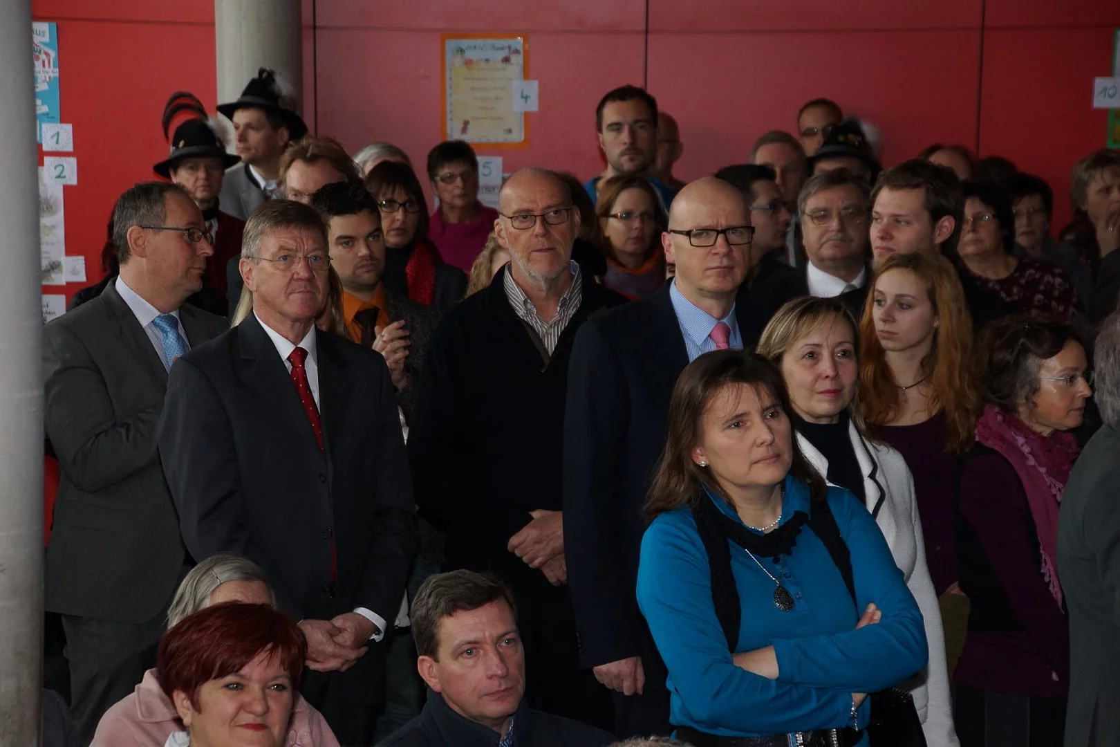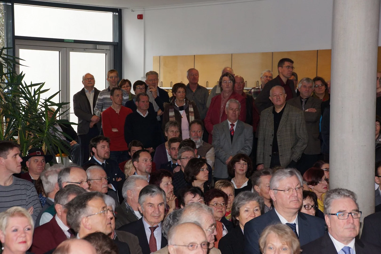 Gleich zu Beginn der Veranstaltung hatte der neue Hausmeister der Hermann-Köhl-Schule die Gelegenheit die vielen Gäste des Neujahrsempfangs von seiner Kompetenz zu überzeugen. Die Lautsprecheranlage versagte ihren Dienst, dank seinem beherztem und schnellen Eingreifen konnte Bürgermeister Josef Walz nach nur kurzer Verzögerung mit der Begrüßung der vielen Gäste beginnen. Unter den zahlreichen Ehrengästen begrüßte er besonders Erich Josef Geßner als obersten Repräsentanten des Landkreises hervor, der aufgrund des anstehenden Ruhestandes letztmals als Landrat seine Aufwartung machte, sowie Katrin Albsteiger als Abgeordnete des Deutschen Bundestages. Er grüßte die Vertreter der Geistlichkeit, die zahlreichen Amtskollegen, darunter alle drei weiblichen Bürgermeisterinnen des Landkreises mit Marita Kaiser, Simone Vogt-Keller und Ursula Brauchle. Begrüßt wurden auch die vielen Kreis- und Stadträte, Gemeinderäte und Vereinsvertreter, Amtsträger aus den einzelnen Ortsvereinen und die zahlreichen interessierten Bürger in der dicht gefüllten Aula. „Man kann nicht in die Zukunft schauen, aber man kann den Grund für etwas Zukünftiges legen – denn Zukunft kann man bauen.“ Mit diesem Zitat des französische Schriftstellers Antoine de Saint-Exupéry begann seine Rede. Danach ging Bürgermeister Walz in seiner Ansprache auf die Themen Zukunft gestalten und Lebensqualität ein. Viel sei schon im vergangenen Jahr angeschoben worden. Die Kinderkrippe im Ortsteil Berg sei fertig, mit dem Bau der Sporthalle bei der Schule ist begonnen worden, ein Pflegeheim ist in Planung. Walz betonte, dass mit solchen Prozessen auch immer Konflikte verbunden seien. "Doch wenn wir in Pfaffenhofen etwas bewegen wollen, dann müssen auch wir uns bewegen. Er wies darauf hin, dass die städtebauliche Entwicklung und Stadtplanung also vor ganz neuen Herausforderungen stünden. Modernisierung und Integration, Bewältigung sozialer Aufgaben und Abfederung des Wandels beeinflusst die auf Zukunft gerichtete Politik. „Sich gegenseitig immer wieder Brücken bauen, sich auch mal an den kleinen Dingen des Lebens erfreuen und froh und positiv das neue Jahr angehen“, Das war sein Wunsch an die Bürger für das kommende Jahr. Musikalisch wurde der Empfang vom Musikverein Pfaffenhofen begleitet. Nach dem gemeinschaftlichen Singen der Bayernhymne nutzten noch sehr viele Bürger den anschließenden informellen Teil recht lange zu Gesprächen.