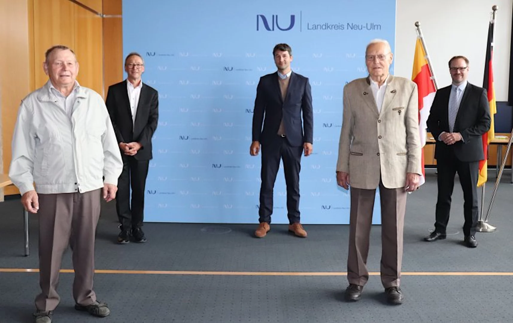 Bei einer Feierstunde im Landratsamt in Neu-Ulm wurden am 23. September u. a. Alois Zeller und Stefan Keller aus Biberberg für ihren jahrzehntelangen Einsatz als Feldgeschworene im Bereich des Marktes Pfaffenhofen geehrt.
