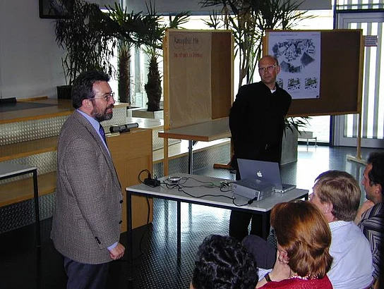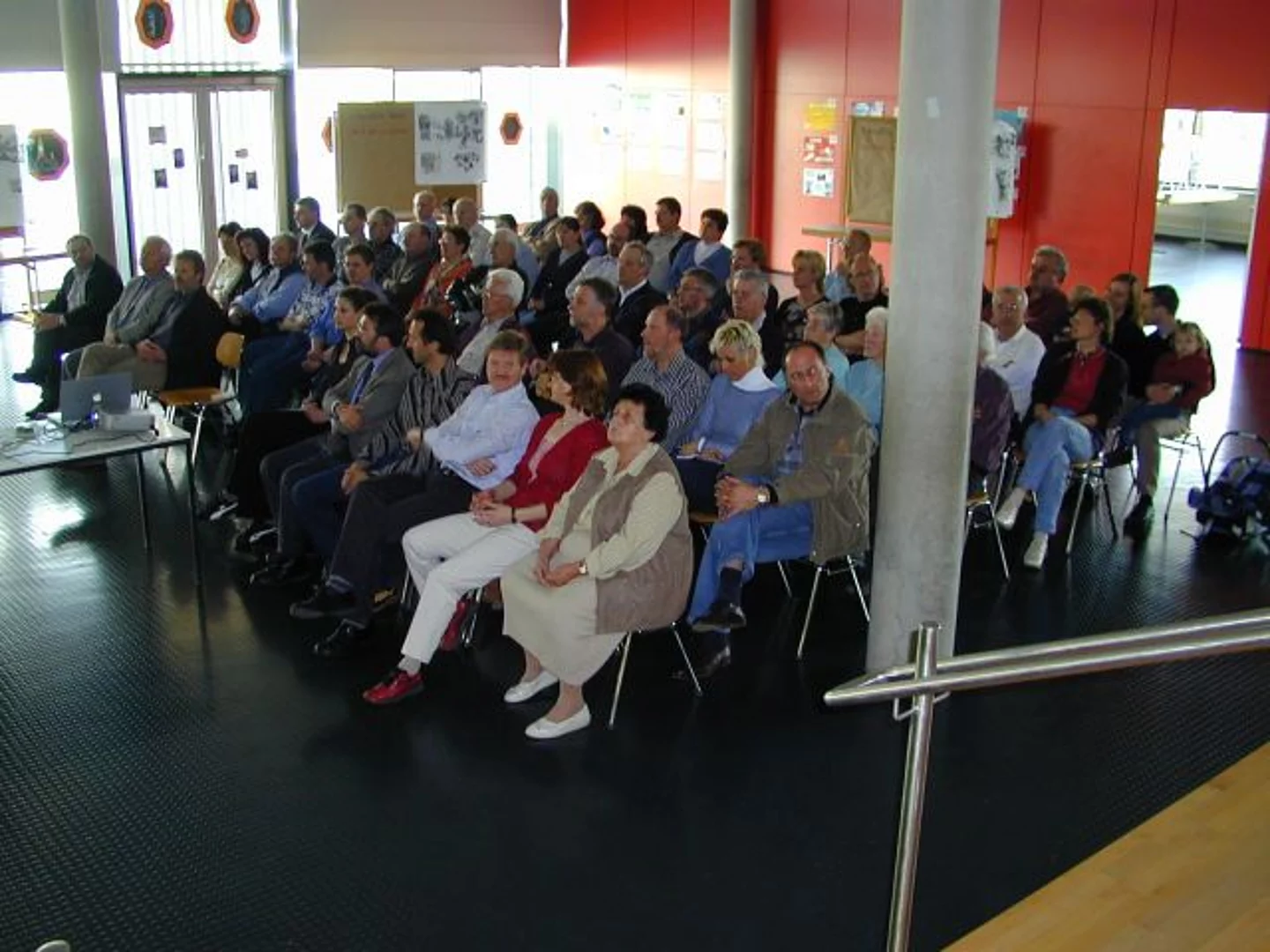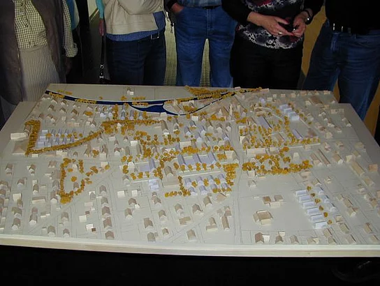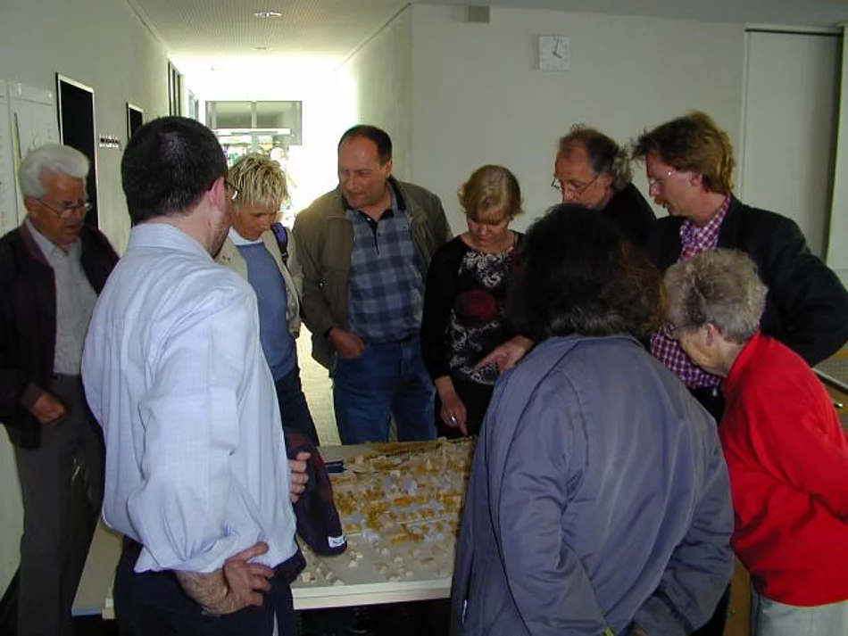 Anhaltendes Interesse an der Planung zur "Neuen Mitte" bewiesen etwa 70 Bürgerinnen und Bürger, die zur Präsentation in die Aula der Hermann-Köhl-Schule gekommen waren. Professor Martin Schirmer zeigte auf der Großleinwand die Entstehung seines Konzeptes und die daraus resultierenden Vorschläge. Zu Beginn machte er deutlich, dass in Pfaffenhofen nicht der übliche gewachsene Altstadtkern vorhanden sei, sondern die sehr lockere Bebauung mit viel Grün eine andere Herangehensweise erfordert. So schlägt er vor die Ortsmitte als Ortsgarten, der von einem Fußwegenetz erschlossen wird, zu gestalten. Es gilt den vorhandenen Grünbestand zu erhalten und auszubauen, die noch vorhandenen typischen Langhäuser sind zu schützen. Die Hauptstraße, die den Ort wie eine Schneise durchschneidet, soll durch Bepflanzung und Gestaltung des Straßenraums auch zum Aufenthaltsort umgestaltet werden. Gleichzeitig soll an ihr entlang die Bebauung mit Versorgungs- und Handelseinrichtungen verdichtet werden. Um diese Ziel zu erreichen muss die Ansiedlung von Handel und Geschäftsbetrieben am Ortsrand nach Möglichkeit verhindert werden. Konzentrieren sollen sich die Geschäfte auf dem Tavernegelände. Hier sollen drei große Häuser, gestaltet als Langhäuser, die Ortsmitte prägen. Verbunden werden diese Gebäude im Innenbereich durch Flachbauten, die weitere Verkaufsflächen aufnehmen können. Erschlossen wird dieser Bereich durch eine weitere Zufahrt hinter der Taverne. Hier sind auch weitere Parkflächen und eine Bebauung mit Einfamilienhäusern vorgesehen. Rings ums Rathaus soll der Raum mehr Platzcharakter erhalten. Der Rathausvorplatz und der Kirchplatz werden vereinigt, der Durchgangsverkehr verlangsamt. Hinter dem Rathaus ist ein Bürgerhaus, ebenfalls in der Form eines Langhauses, respektive Stadels, vorgesehen. Eine ökologische, familienfreundliche Siedlung könnte auf dem Gelände des alten Sportplatzes entstehen, weitere Wohngebiete im Zentrum sind am Gartenweg und am Schwesternweg geplant. Am Römerweg sieht der Entwurf Altenwohnungen, gruppiert um einen Innenhof, vor. Spontanen Beifall aus dem Publikum erhielt der Planentwurf zum Teilgebiet "Raiffeisengelände". Der dort bestehende Turm soll erhalten bleiben, als mögliche Nutzung ist Raum für die Jugend angedacht. Daran angebaut ist ein Cafe, von vielen Bürgern gewünscht, zu sehen. Aufgewertet wird das ganze von einem Dorfteich. Daran würde sich ein kleines Wohngebiet "Wohnen am Dorfteich" anschließen.