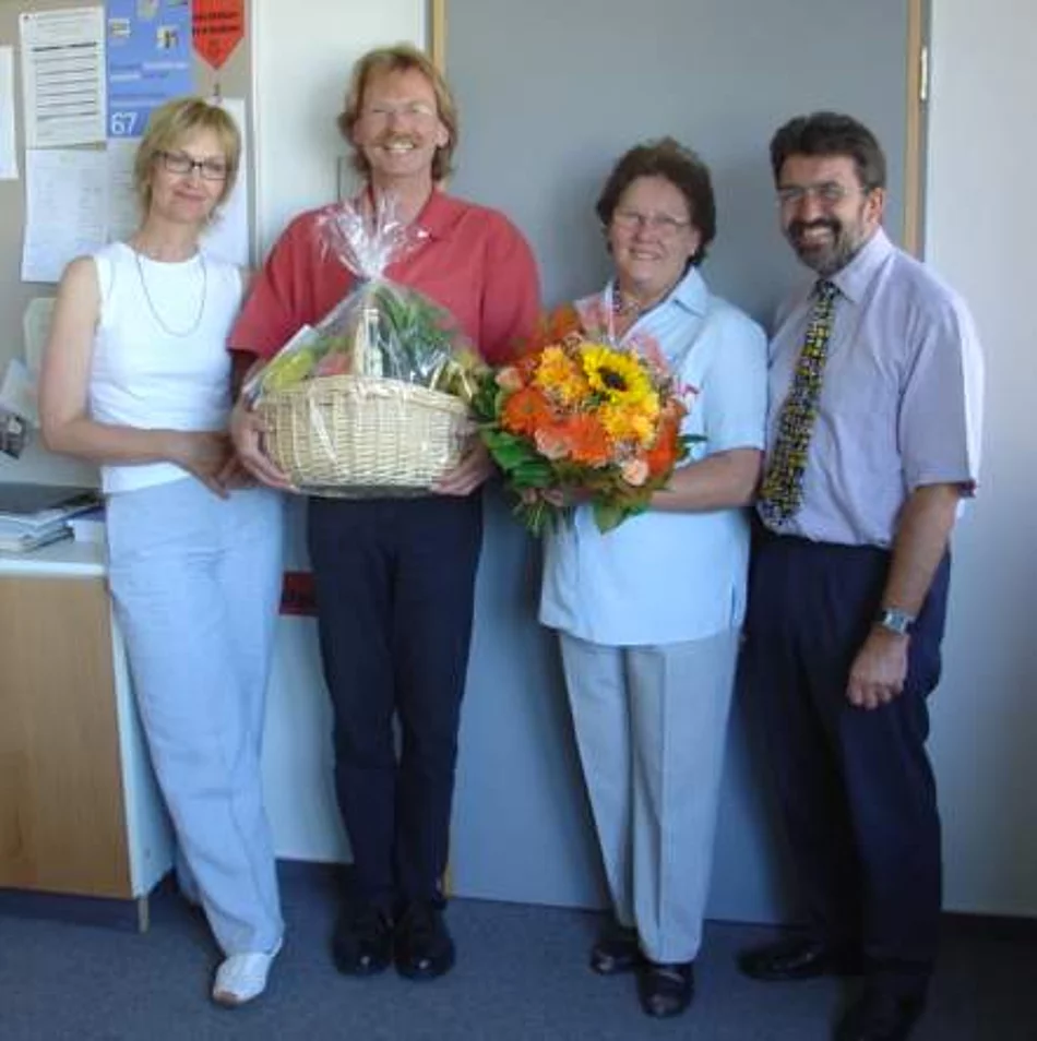 Frau Ramsteiner war seit 1.1.1987 als Raumpflegerin zunächst in Diensten des Schulverbandes Pfaffenhofen-Beuren danach der Verwaltungsgemeinschaft Pfaffenhofen für verschiedene Räumlichkeiten der Hermann-Köhl-Volksschule tätig. Mit großem Einsatz und Pflichtbewusstsein hat sie die ihr übertragenen Arbeiten sehr zur Zufriedenheit der Schulleitung und der Lehrerschaft in all den Jahren erfüllt. Frau Ramsteiner geht nun in die Freizeitphase der Altersteilzeit. In einer kleinen Feierstunde dankten Bürgermeister Josef Walz und Schulleiter Rolf Gaßner sowie die Kolleginnen und Kollegen von Frau Ramsteiner der neuen Ruheständlerin und überreichten kleine Präsente.