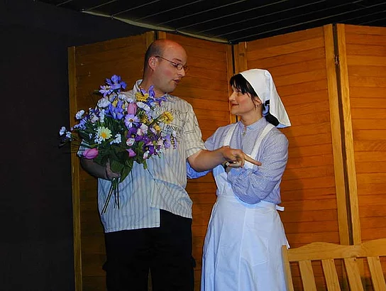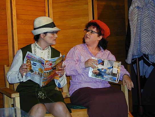 Anita Strobel und Maria Störk als Martha und Rosa im Wartezimmer des Arztes reizen schon allein durch die authentische Aufmachung zum Lachen. Jede lässt am Mann der anderen kein gutes Haar, dann werden noch die Geschlechtsgenossinnen durchgehechelt, da sind auf einmal Hexenschuss und Erkältung nur noch Nebensache.