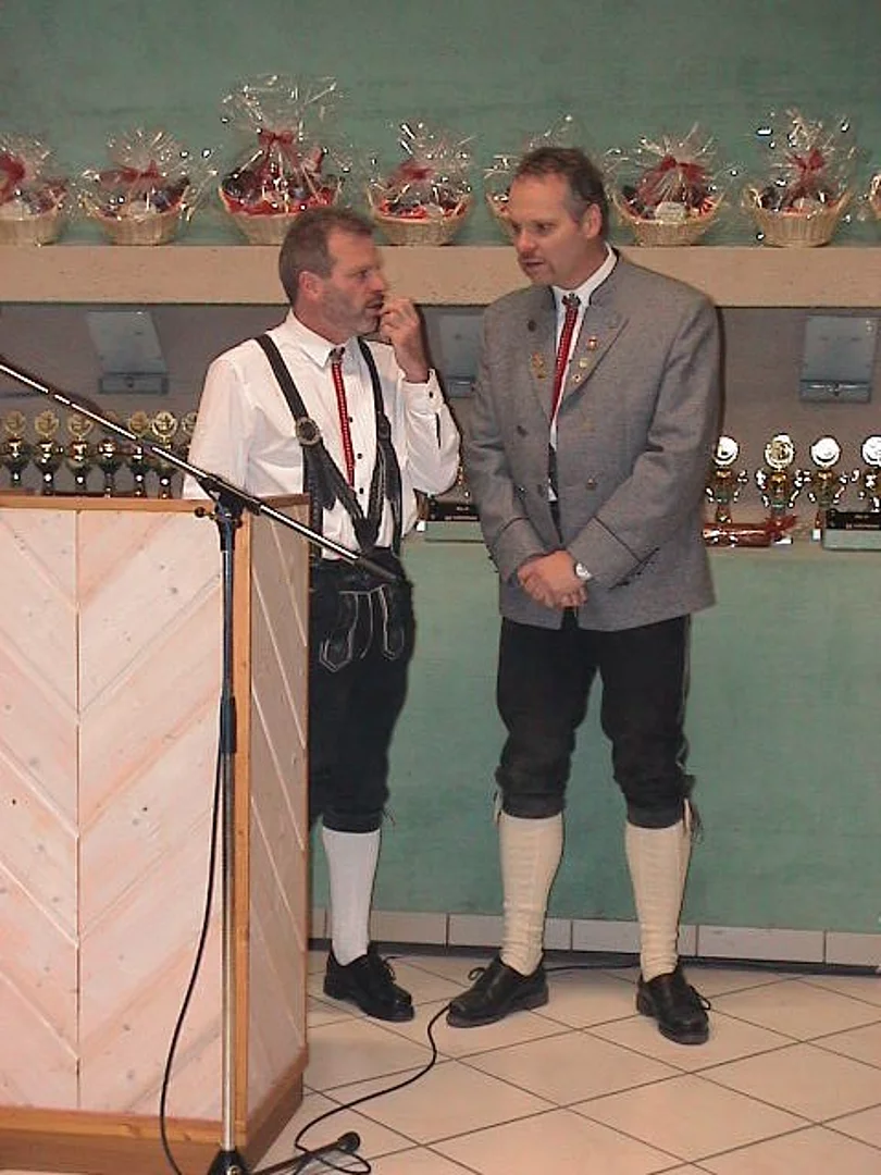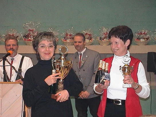 805,8 Ringe reichten dem "Schweizer-Clan" zum Sieg beim Jedermann-Schießen 2001. Damit ging der Rothtal-Wanderpokal zum dritten Mal an Johann, Friedrich und Roland Schweizer, die ihn nun endgültig behalten dürfen. Zuvor mussten sie sich gegen 54 Mannschaften mit 216 Schützen und Schützinnen durchsetzen. Mit gerade mal 3,4 Ringen Unterschied landeten die "Vier Schwauger" auf dem zweiten Platz, mit 798,7 Ringen knapp gefolgt von den "Elchen". Bei der Jugend hatten die "Malefizbuaba", bestehend aus Daniel Frick, Bastian Resch, Alexander Böck und Phillip Dirr mit 766,4 Punkten die Nase vorn. Die "Vier Fruchtzwerge" erreichten mit 744,4 Ringen den zweiten Platz, "Koi Schuß, koi Treffer" mit 680,9 Ringen den dritten. "Die heißen Hündinnen" Waltraud Engelhard, Jutta Mayer, Tanja Guggenmoos und Gitti Langenwalter bewiesen mit 762,7 Ringen ihre Treffsicherheit und wurden dafür mit dem ersten Platz belohnt. "Die Krawallschachteln" brachten 759,4 Ringe zusammen, dafür gab´s den zweiten Rang und "www.dreff.nix.de" heimsten mit 758,7 Ringen den dritten Platz und den Preis für den originellsten Namen ein. Bei den Herren wurde dieser Preis an "Die Kugelbeisser" und bei der Jugend an "Die Fruchtzwerge" vergeben. Trotz gewaltiger Steigerung zum Vorjahr schaffte es "Eins, zwei, Blattschuß", gebildet von der Familie Schmiedl, wieder nicht die rote Laterne abzugeben, zum Trost gab es zum Pokal eine riesengroße Wurst. Egal auf welchem Platz jemand landete, es war für alle Teilnehmer ein Riesenspektakel mit viel Spass und Vergnügen. Bei allem Spass werden doch die Ergebnisse professionell ausgewertet und die Sieger sorgfältig ermittelt. Daher nachfolgen die Ergebnisse im Einzelnen.