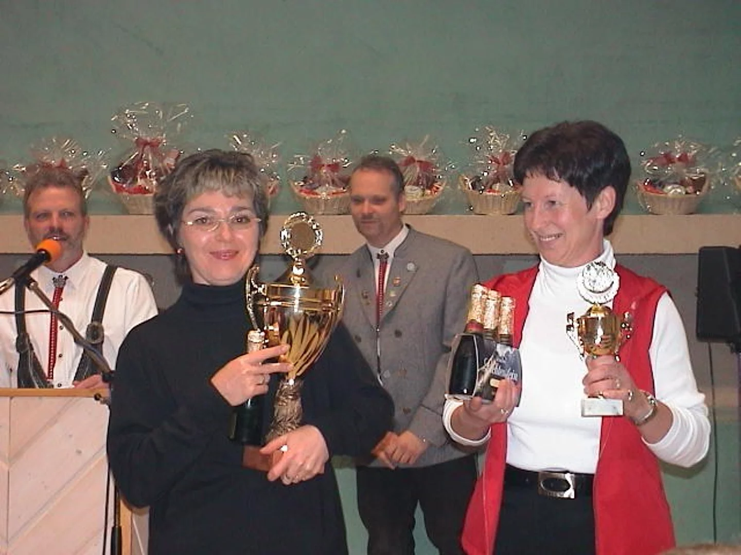 | Damen nicht aktiv - Blattl: 1. Anneliese Schedel (5,5-Teiler), 2. Rosi Gassner (7,3Teiler), 3. Maria Kast (9,2-Teiler); | |