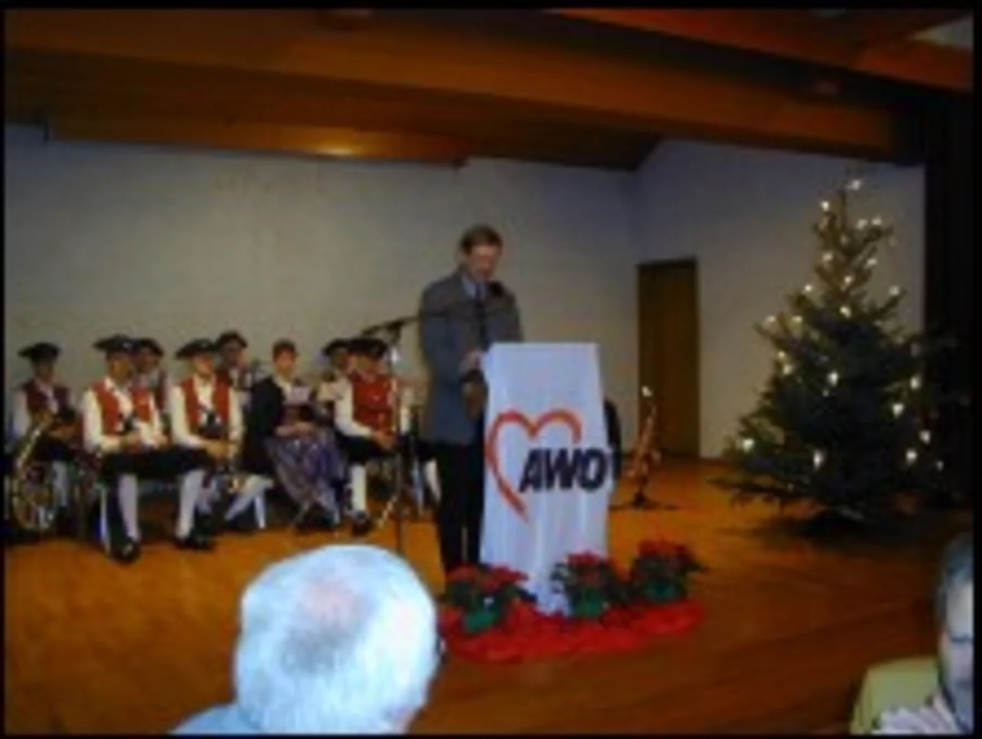 Wie es schon schöne Tradition ist feierten die Senioren Pfaffenhofens auf Einladung der Arbeiterwohlfahrt den ersten Advent. Fleissige Helfer hatten den Saal des Martinushauses mit viel Liebe in den Farben der AWO rot-weiß dekoriert. Schon lange vor Beginn der Veranstaltung waren die ersten Gäste da und hatten sich die gewohnten Plätze gesichert. Damit die Senioren für das Kommende gestärkt seien, wurde die Veranstaltung mit dem Kuchenbuffett eröffnet. Dann begrüßte der 1. Vorstand Martin Sailer die Anwesenden. In seiner Rede gab er einen Überblick über das vergangene Jahr und die Aktivitäten der AWO. 3. Bürgermeister Hans Kast, der im Namen der Marktgemeinde die besten Grüße überbrachte, verwies in seiner Rede auf den Wandel, den die Advents- und Weihnachtszeit im Laufe des Lebens der Anwesenden mitgemacht hat. Dann machte er allen mit der Geschichte von "den Weichnachtsloibla" eine große Freude. Die Musikkapelle Beuren spielte sich mit besinnlichen Weihnachtsweisen, die sie zwischen den Redner vortrug, in die Herzen der Senioren. Diakon Rolf vertiefe das von Hans Kast Gesagte unter anderem mit folgendem Gleichnis: "Aus der Ferne kommt ein kleines Licht" so heißt es bei Jessaja. Dieses Licht kommt näher und wird mehr. So gehört es zur Zeit des Advent, daß das Licht des Adventskranzes langsam mehr wird, also pro Adventssonntag ein Licht mehr. Der Christbaum zeigt uns die Fülle des Lichtes der Weihnacht. Liebe Seniorinnen und Senioren. In Ihrer Kindheit und auch in den Jahren nach dem Krieg waren die Christbäume nicht schon vor dem 4. Advent in den Gärten, geschweige denn bereits ab Mitte November über all. Es geht viel vom "Wachsenden Licht " verloren.