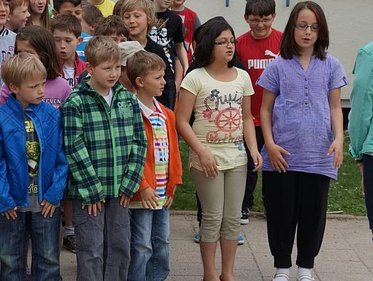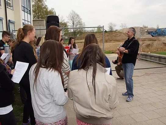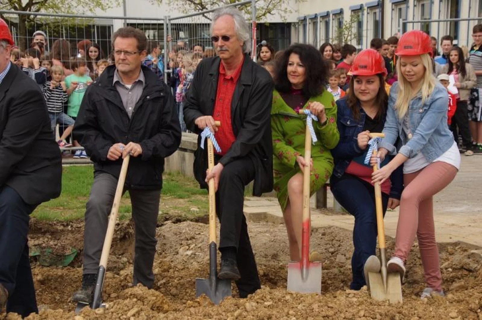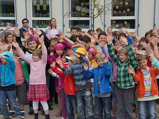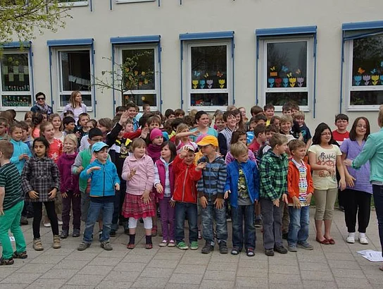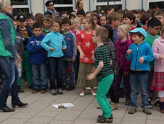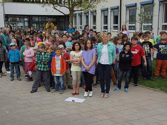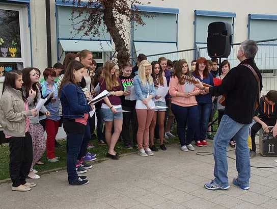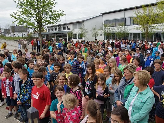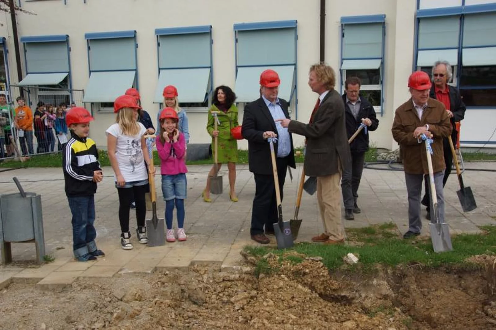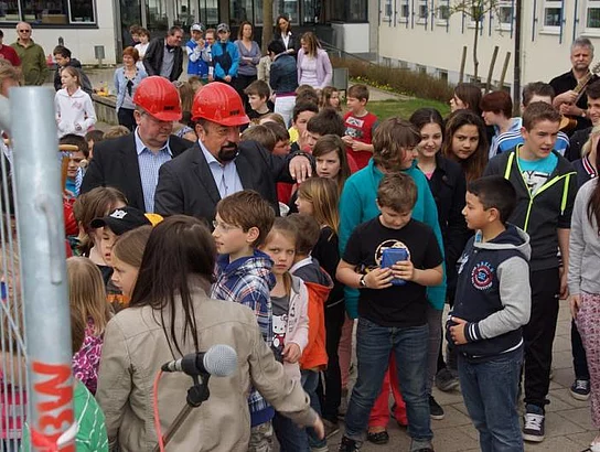 Einen Rap, der bei der Feier Premiere hatte, wurde von den Grundschülern zum Besten gegeben: Die Instrumente fielen aus, der Sprit wurde knapp. Doch auf die Bremen war Verlass, denn sie machte nicht schlapp.", so ging eine Textzeile, passen d zum diesjährigen Hermann-Köhl-Jubiläum. Auch der Chor der Mittelschule trug mit dem Pfaffenhofen-Lied: "Herrlich auf dem Land gelegen, mit viel Stadtflair angehaucht" zur musikalischen Umrahmung bei. Dann griffen Bürgermeister, Architekten, Markträte, Grundschüler und Schulsprecher zum Spaten und starteten symbolisch mit den Bauarbeiten.