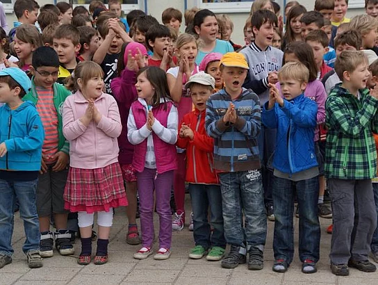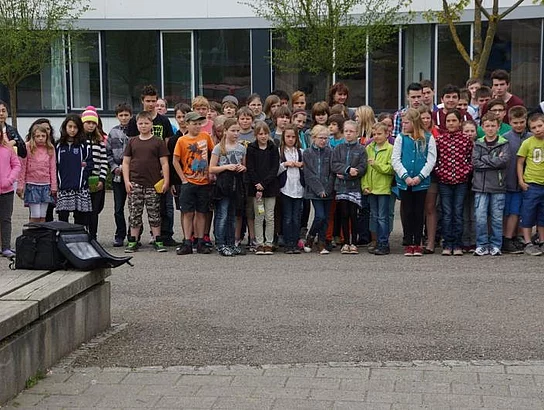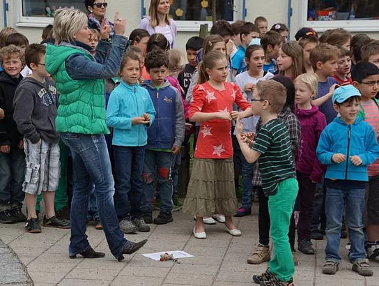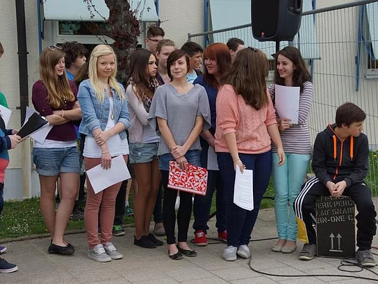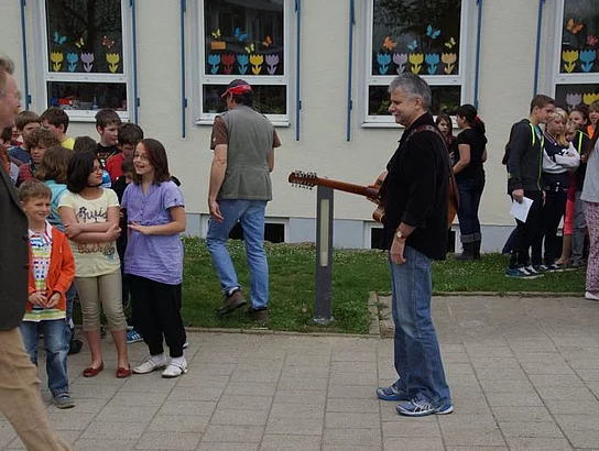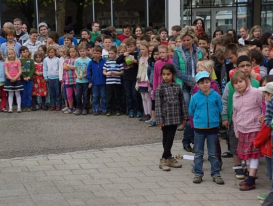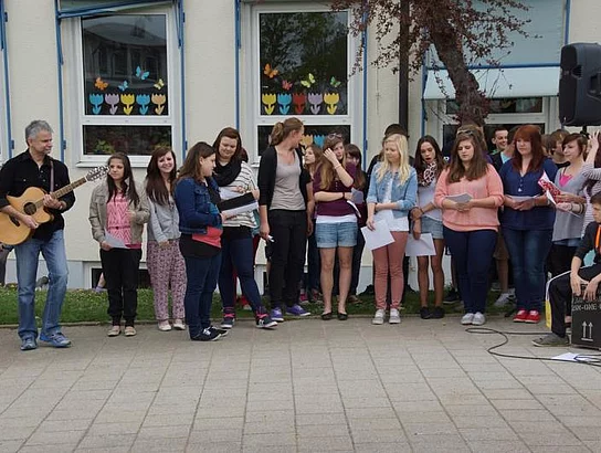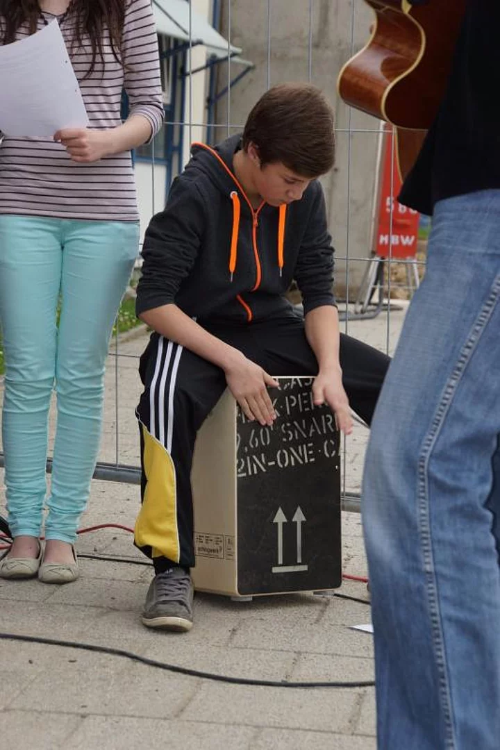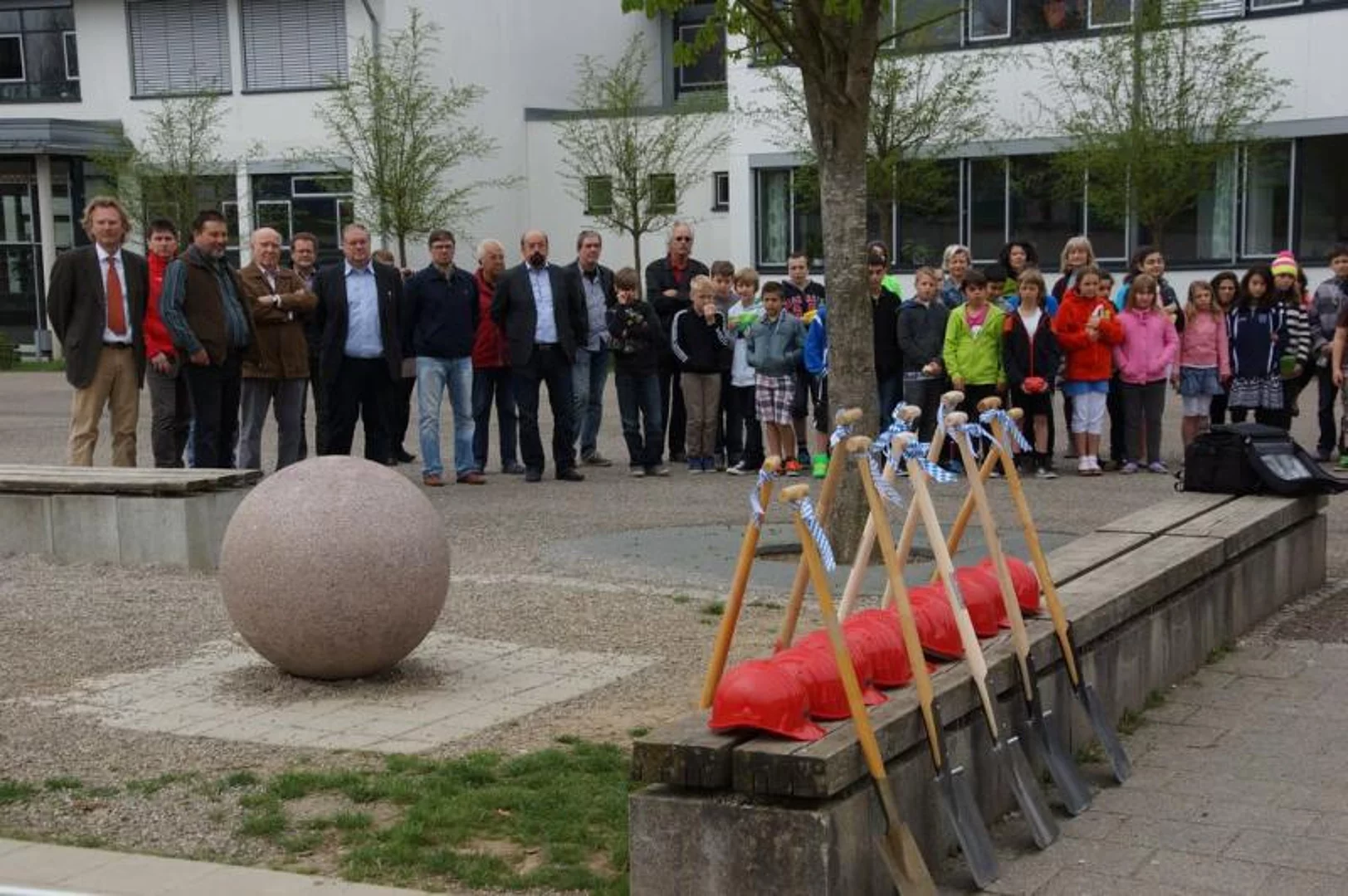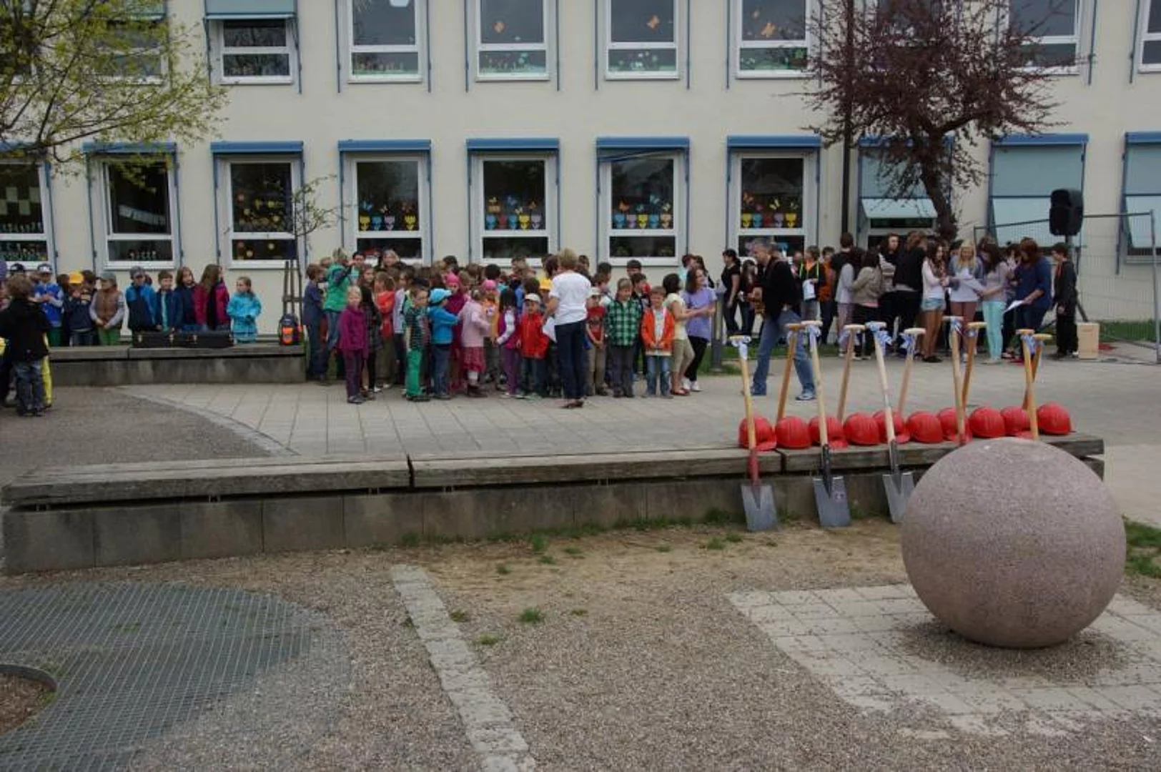 Einen Rap, der bei der Feier Premiere hatte, wurde von den Grundschülern zum Besten gegeben: Die Instrumente fielen aus, der Sprit wurde knapp. Doch auf die Bremen war Verlass, denn sie machte nicht schlapp.", so ging eine Textzeile, passen d zum diesjährigen Hermann-Köhl-Jubiläum. Auch der Chor der Mittelschule trug mit dem Pfaffenhofen-Lied: "Herrlich auf dem Land gelegen, mit viel Stadtflair angehaucht" zur musikalischen Umrahmung bei. Dann griffen Bürgermeister, Architekten, Markträte, Grundschüler und Schulsprecher zum Spaten und starteten symbolisch mit den Bauarbeiten.