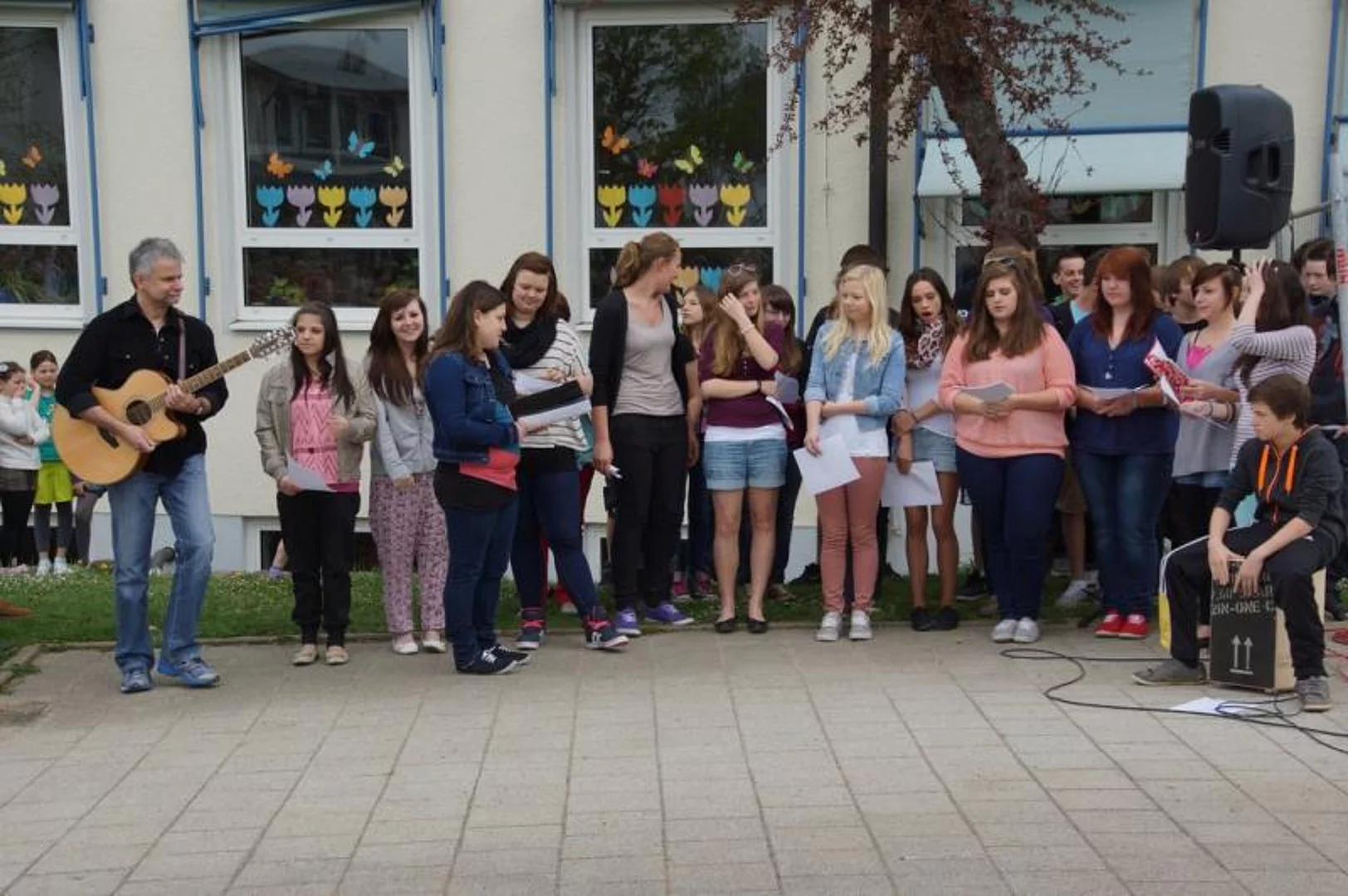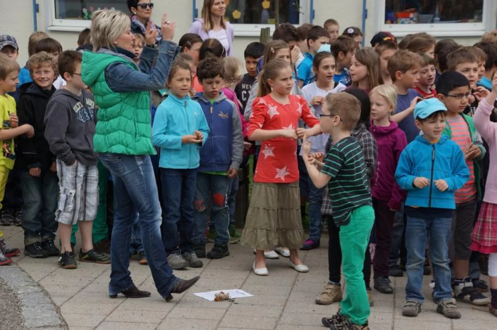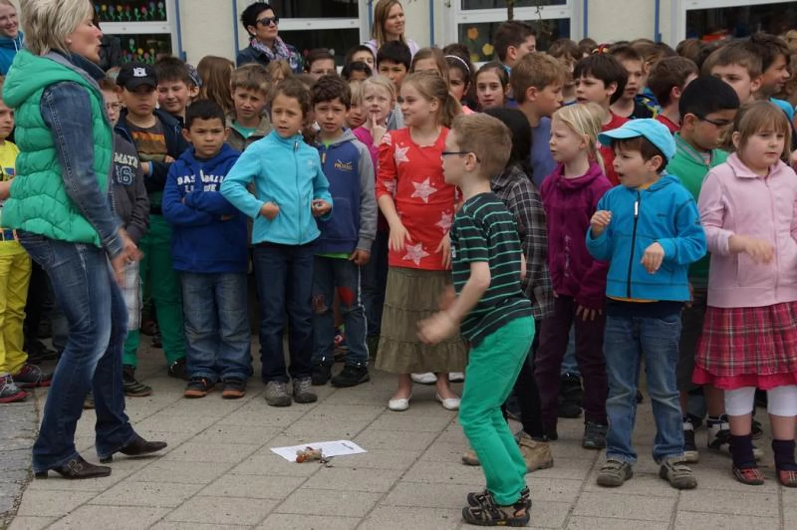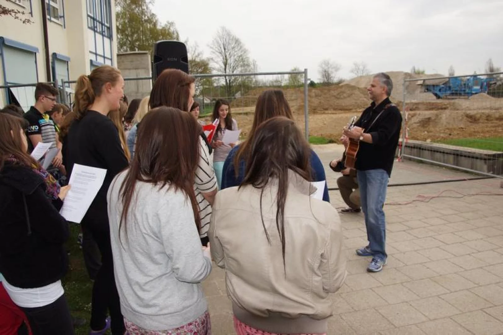 Einen Rap, der bei der Feier Premiere hatte, wurde von den Grundschülern zum Besten gegeben: Die Instrumente fielen aus, der Sprit wurde knapp. Doch auf die Bremen war Verlass, denn sie machte nicht schlapp.", so ging eine Textzeile, passen d zum diesjährigen Hermann-Köhl-Jubiläum. Auch der Chor der Mittelschule trug mit dem Pfaffenhofen-Lied: "Herrlich auf dem Land gelegen, mit viel Stadtflair angehaucht" zur musikalischen Umrahmung bei. Dann griffen Bürgermeister, Architekten, Markträte, Grundschüler und Schulsprecher zum Spaten und starteten symbolisch mit den Bauarbeiten.