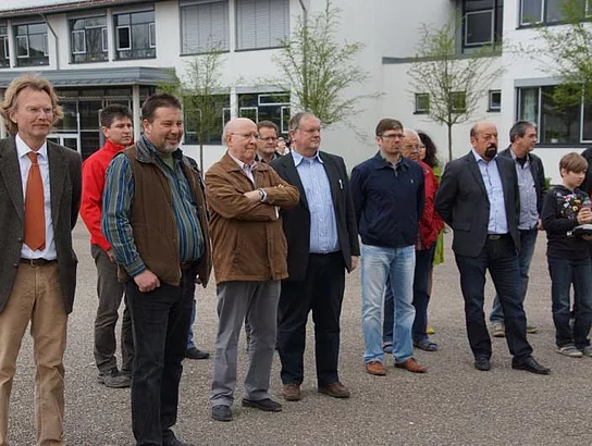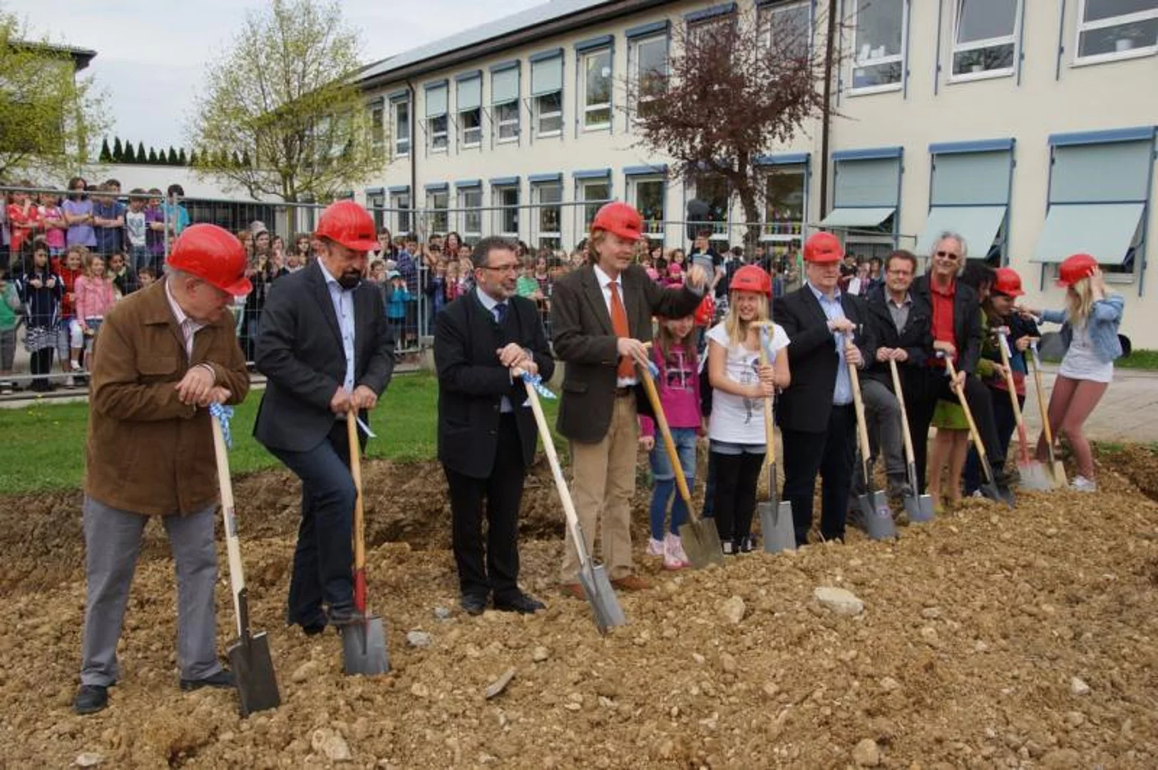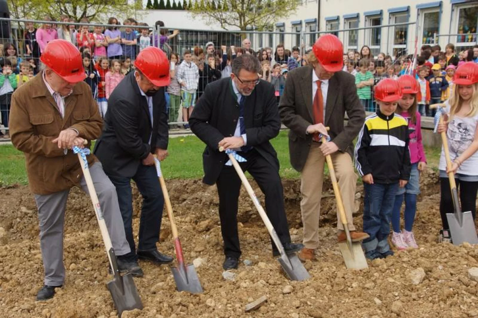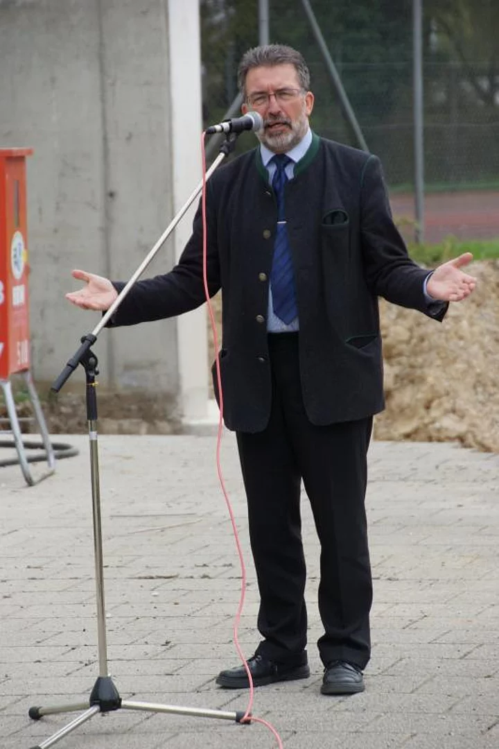Knapp einen Monat ist es her, dass die alte Sporthalle mit einer Abschiedsparty gebührend für ihre Verdienste gewürdigt wurde. Dann begann der Abriss, der zügig abgeschlossen wurde. Damit war der Weg frei für den Beginn der eigentlichen Bauarbeiten die mit dem offiziellen Spatenstich gestartet wurden. Während der großen Pause der Hermann-Köhl-Schule fand die kleine Feier zum Baubeginn statt. In seiner Ansprache wies Bürgermeister Josef Walz darauf hin, dass die Bausumme von rund 3,6 Millionen € für eine Gemeinde wie Pfaffenhofen nicht leicht zu schultern sei. Nachdem jedoch die ersten Bauabschnitte durchaus im Kostenrahmen, teilweise sogar deutlich darunter, vergeben werden konnten, ist er zuversichtlich diesen einhalten zu können. Die künftige Halle wird drei Normspielfelder mir einer Gesamtfläche von 980 qm haben. Damit haben quasi alle Hallensportarten geeignete Bedingungen in der Zweifachhalle die von den Architekten Hermann Spiegler und Richard Schwarzländer geplant wurde. Diese betreuen auch die Bauarbeiten, die voraussichtlich bis Sommer 2014 andauern. Während dieser Zeit müssen die Schüler zum Sportunterricht nach Holzheim ausweichen. Walz dankte Schulleiter Rolf Gassner, dass er dies so gut gemanagt hat.