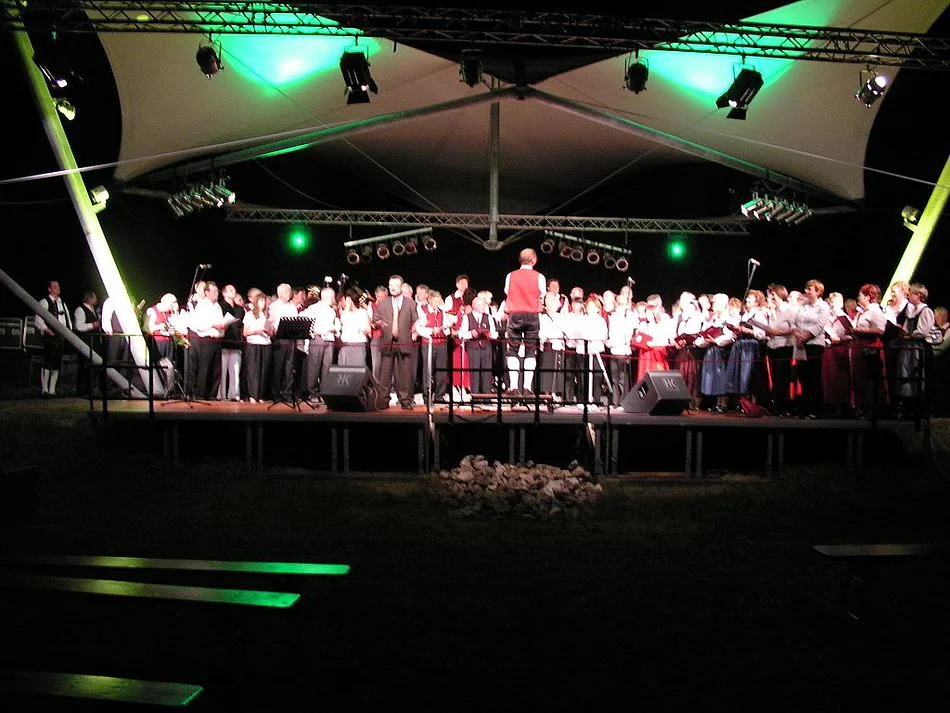 Rund 600 Besucher und auch die 250 Mitwirkenden genossen den lauen Sommerabend und die romantische Kulisse am Waldesrand von Marienfried. Zugunsten der Aktion „Pfaffenhofen hilft“ wurde von den Musik- und Gesangsvereinen Pfaffenhofens der Konzertabend „Sing & Brass“ aufgeführt. Zur Eröffnung erklang der „Jägergruß“ gespielt von den Jagdhornbläsern Neu-Ulm/Nord am Waldesrand. Moderator Anton Nadler münzte dann das Hornsignal in einen Nachruf auf den Bären Beppo um, um dann gleich erklärend hinzuzufügen, dass es das Signal „Bär tot“ tatsächlich gibt. Zum Beweis spielte er das Signal selbst ab. Die kleinen Sänger und Sängerinnen vom Kinderchor Roth-Berg unter der Leitung ihrer Dirigentin Ingrid Ott eröffneten den Sangesreigen. Ihnen folgte die Chorgemeinschaft Roth-Berg mit Dirigent Roland Horst. die mit dem Lied „Zauber des Südens“ das Wetter des Abends genau trafen. Der Männerchor „Liederkranz“ Pfaffenhofen brachte unter anderem den Radetzky Marsch und den Song von Udo Jürgens „Mit 66 Jahren“ zum Vortrag. Getrübt war die Freude bei den Sängern durch den Umstand, dass sie ihr sehr geschätzte Chorleiterin Gaby Hartmann verabschieden mussten. Jeder Männerchorsänger überreichte Gaby Hartmann eine rote Rose. "Musik erfüllt die Welt", gesungen von der Chorgemeinschaft "Sängertreu" Biberberg unter der Leitung von Kristina Schrag war an dem schönen Abend wörtlich zu nehmen und Mozarts "Kleine Nachtmusik" interpretierten die Biberberger Sängerinnen und Sänger als "Unsere kleine Nachtmusik. "Wann wird's mal wieder richtig Sommer" - der gemischte Chor des "Liederkranz" Pfaffenhofen, dirigiert von Monika Mokosch, stellte diese Frage, die sich angesichts der hochsommerlichen Temperaturen selbst beantwortete. Die Blaskapellen des Marktes hatten für das Konzert ihre schönsten Stücke ausgesucht. Von den "Egerländer Perlen" über "Daheim in Böhmen", "Blue Night und "Mährisches Feuer" bis hin zu "Arsenal" und "The Rose" reichte das Spektrum das die ganze Leistungsfähigkeit der heimischen Musikanten zeigte. Die Musikkapelle Pfaffenhofen (Dirigent Josef Lohmeier), der Musikverein Kadeltshofen (Dirigent Michael Offenwanger) und die Musikkapelle Beuren (Dirigent Wolfgang Metz) liefen im wunderbaren Ambiente zur Höchstform auf. Hauptverantwortlich für das schöne Ambiente waren neben der Natur die Jungs vom LSP-Team die völlig unentgeltlich und ehrenamtlich Licht- und Tonanlage zur Verfügung gestellt hatten. Erstklassiger Klang und eine wunderbar ausgeleuchtete Bühne schufen die Grundlage für ein einmaliges Konzerterlebnis, das seinen Höhepunkt im gemeinsamen Auftritt aller Chöre und Musikkapellen fand. „Danke für diesen guten Abend“ war der Titel der den Abend beschließen sollte, aber ohne Zugabe wollten die Zuhörer nicht nach Hause gehen und so so stimmte Dirigent Metz mit den sechs Chören und vier Musikkörpern zur Begeisterung des Publikums, das sich von den Plätzen erhob, die Bayernhymne an.
