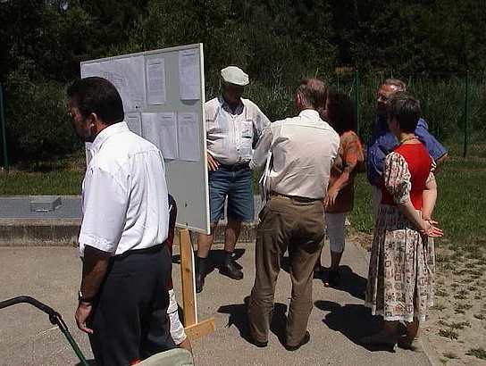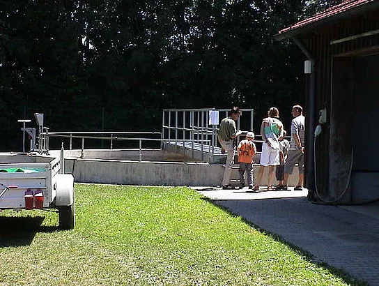 Aus Anlass des Abschlusses der Arbeiten für die Abwasserentsorgung im Biber- und Osterbachtal hat die Marktgemeinde Pfaffenhofen am Sonntag dem 13.07.2003 zu einem Tag der offenen Tür in die Kläranlage Beuren eingeladen. Bei sehr heißen Temperaturen haben sich rund 80 interessierte Bürgerinnen und Bürger, jung und alt eingefunden. Die anwesenden Mitarbeiter und auch Vertreter des planenden Ing.-Büros erläuterten die Funktion der Kläranlage, zeigten die entsprechenden Stationen wo aus schmutzigem Abwasser wieder sauberes Wasser wird, und beantworteten die jeweiligen Fragen. Anhand von Schautafeln wurde zudem der Lauf des Abwassers auf der Anlage dargestellt. An die Kläranlage Beuren sind die Ortsteile Balmertshofen, Beuren, Biberberg, Niederhausen und Raunertshofen angeschlossen. Mehr als 10 Kilometer Kanalortsnetz und ca. 7 Kilometer Druckleitungen wurden dabei verlegt. Nicht schlecht staunten vor allem die jungen Besucher als ihnen erklärt wurde, dass die Fläche der Scheibentauchkörper, dort wo Kleinlebewesen die gelösten Schmutzstoffe verzehren, über 7000 Quadratmeter beträgt, was die Größe eines Fußballfeldes ausmacht. Mit einer kleinen Erfrischung wurden abschließend alle Besucher für ihr Kommen belohnt.