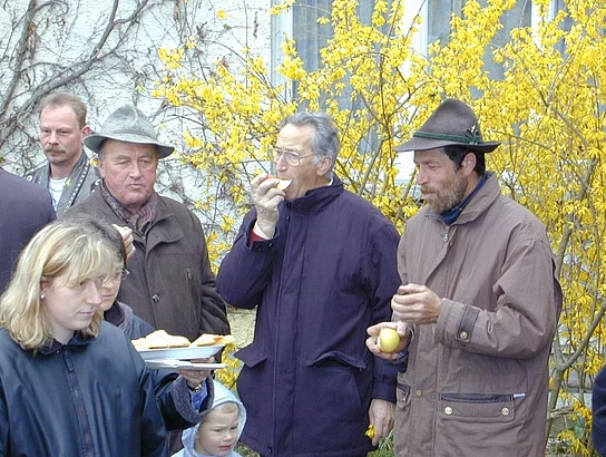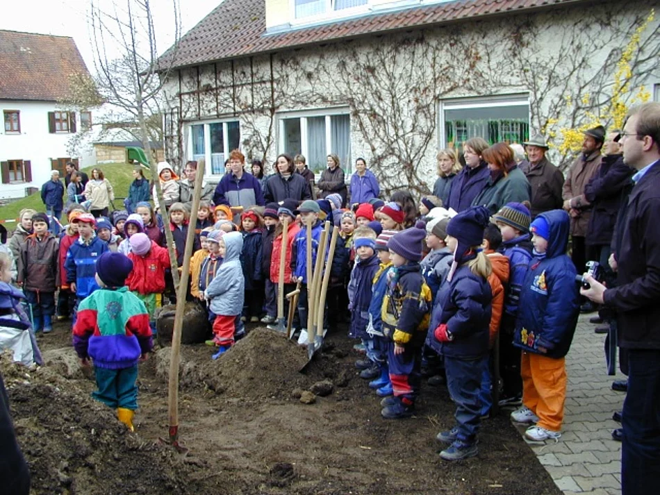 Der "Tag des Baumes" hat im Landkreis Neu-Ulm schon eine langjährige Tradition. Am Donnerstag, 3. April, war Landrat Erich Josef Geßner im Kindergarten St. Martin in Pfaffenhofen zu Gast, um gemeinsam mit Bürgermeister Josef Walz und den Sprösslingen des Kindergartens St. Martin einen Apfelbaum zu pflanzen. Der Landkreis hatte einen Baum der Sorte "Alkmene", die zu den besten Frühherbstäpfeln zählt, für den Kindergarten spendiert. "Dies ist auch eine kleine Anerkennung für die Arbeit der Eltern und Erzieherinnen bei der Umbaumaßnahme des Kindergartens im vergangenen Jahr", hob Landrat Geßner hervor. Außerdem sei dies auch ein Geburtstagsgeschenk für den Markt Pfaffenhofen, der in diesem Jahr sein 700-jähriges Bestehen feiert.