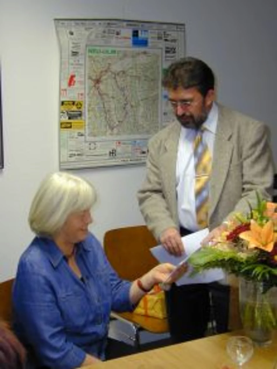 Für den neuen Lebensabschnitt wünschte er ihr alles Gute, dass sie nun mehr Zeit für ihre Familie aber auch für ihr Hobby dem Extrembergsteigen habe, wünschte ihr viel Glück, Gesundheit und viel Freude an der nun mehr zur Verfügung stehenden Zeit.