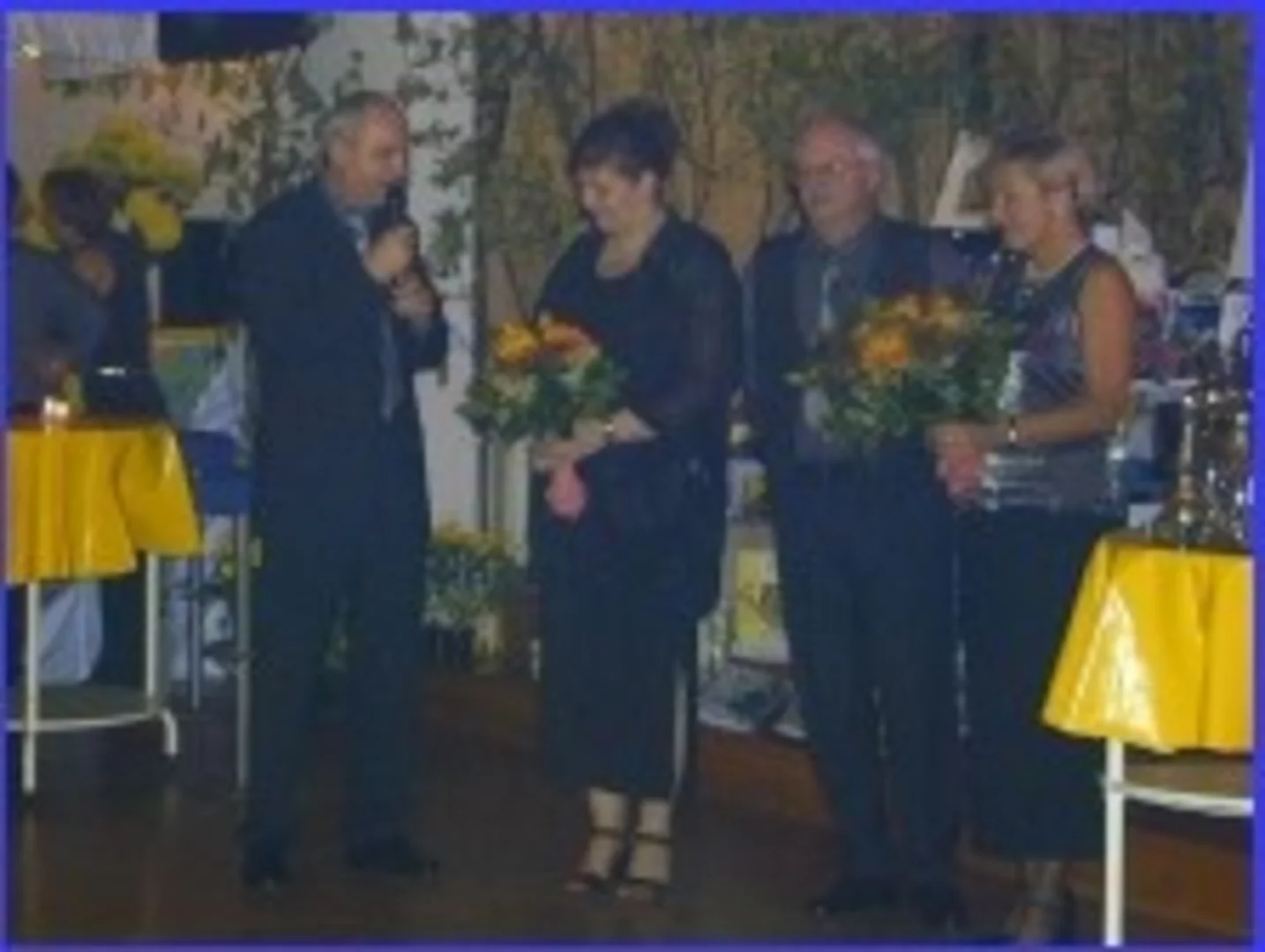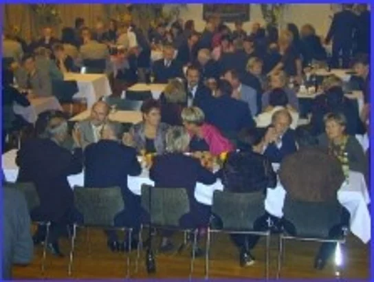 Selten wird das Martinushaus so aufwändig dekoriert, wie bei der Herbstparty des TCP. Mit Laub, Schubkarren mit Kartoffeln, Äpfeln auf den Tischen, herbstlichen Blumen und noch viel mehr anderem wurden die Besucher schon beim Eintritt in festliche Stimmung versetzt. Dann wurde auch nicht lange gefackelt, die Tanzkapelle Airport legte los und die Party wurde mit ein paar Tanzrunden eröffnet. Dann begrüßte der Vorsitzende Phillip Walk die Gäste, wünschte in einer kurzen Ansprache viel Vergnügen und eröffnete das kalt-warme Buffet. So gestärkt konnte man bei schwungvollen Rhythmen die Kalorien gleich wieder weg tanzen. Dann war die Stunde für den Stargast des Abends gekommen, Mike Ascot mit seiner Hypnoseshow. Selbst die Zuschauer, die diese Show schon vor einigen Jahren auf der Herbstparty erleben durften, waren erneut von der Faszination der Hypnose in den Bann geschlagen. Mit ungläubigem Staunen verfolgten sie, wie eine junge Dame steif wie ein Brett wurde oder wie ein Mensch reagiert, der durch eine Zauberbrille alle Menschen im Saal nackt sieht. Daran anschliessend wurden, völlig unhypnotisiert, in einer kurzen Zeremonie die Vereinsmeister der Saison 2000 geehrt. Meister wurden: