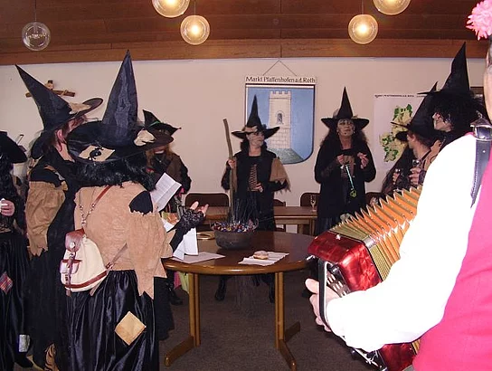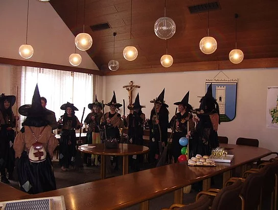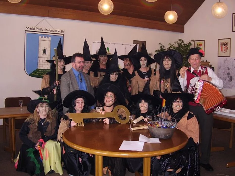 Die wilden Weiber, respektive die "Biberhexen" waren los und stürmten am "gompiga Doschtig" das Rathaus. Angeführt von den zwei Hexen Maria aus Beuren (Markträtin Maria Störk) und Resi aus Roth (Markträtin Theresia Uhl) war es ihnen ob der profunden Ortskenntnis ein Leichtes dem Bürgermeister Josef Walz die untere Hälfte seiner Krawatte und den Rathausschlüssel zu rauben. Mit sich führten sie einen brennenden Hexenkessel. Beim Tanz um diesen wurde mit zahlreichen gereimten Zauberformeln der Höllenbrei angerührt. Dann äußerten die Hexen ihre Wünsche. Der Bürgermeister solle beim nächsten Marktfest als Zeus am Eingangstor stehen und die "Tour de Ländle" mit den Markträten per Rad müsse diesmal zum Stadelfest nach Biberberg führen. Von den Zauberformeln geschwächt übergab Walz fast kampflos den Rathausschlüssel und offenbar völlig verhext belohnte er den Überfall gar noch mit Sekt und Gebäck.