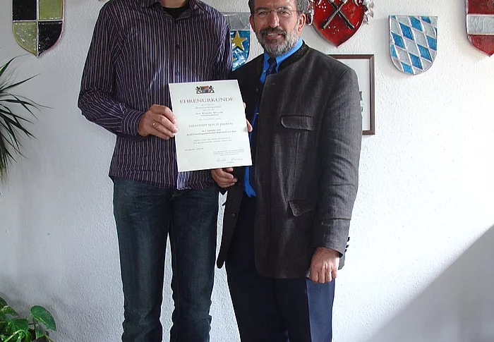 Der Bayerische Staatsminister des Innern hat für besondere Verdienste um die kommunale Selbstverwaltung unserem Bürgermeister Josef Walz die Kommunale Verdienstmedaille in Bronze verliehen. Diese Ehrung hat am 13. Juni 2008 im Rahmen einer Feierstunde im Landratsamt stattgefunden. Unser Landrat Erich Josef Geßner dankte unserem 1. Bürgermeister für seinen Einsatz für die Heimat und den Dienst an der Allgemeinheit. Auch die Schattenseiten wie Kritik und eine hohe zeitliche Belastung hatten ihn…