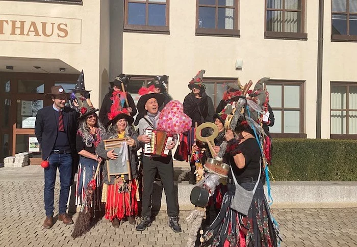 Um Punkt 11 Uhr am ‚Gompiga Doschtig’ stürmte ein wilder Hexenhaufen aus dem Tal der Biber und der Roth das Pfaffenhofener Rathaus.